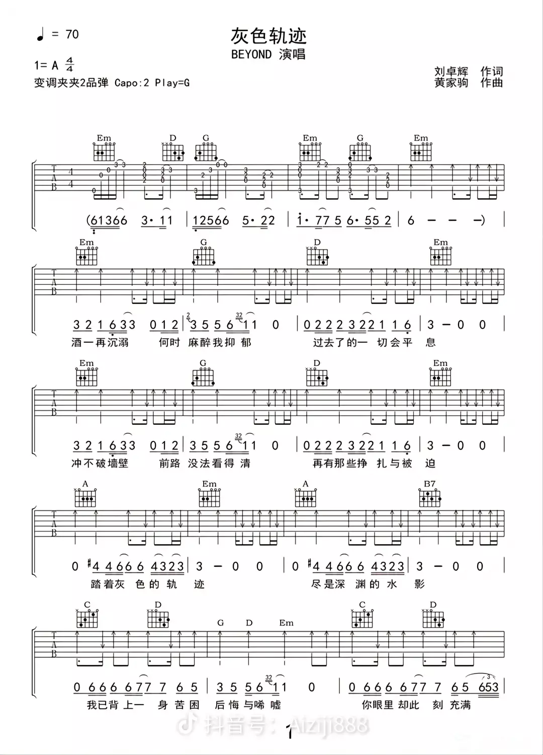 曲谱介绍: 黄家驹《灰色轨迹》吉他弹唱谱,共有4张高清图谱。