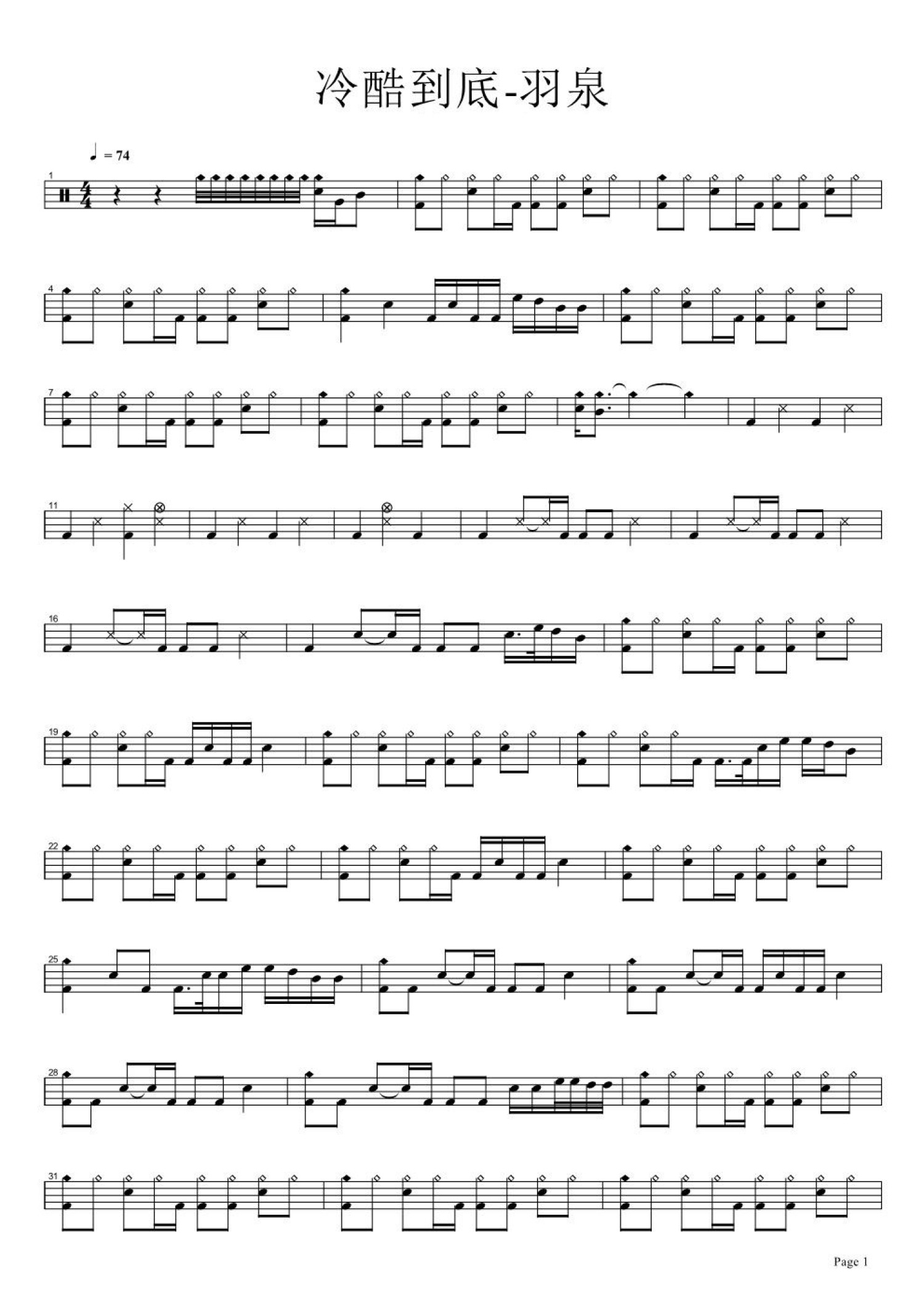 冷酷到底鼓谱 - 羽泉 - 架子鼓谱