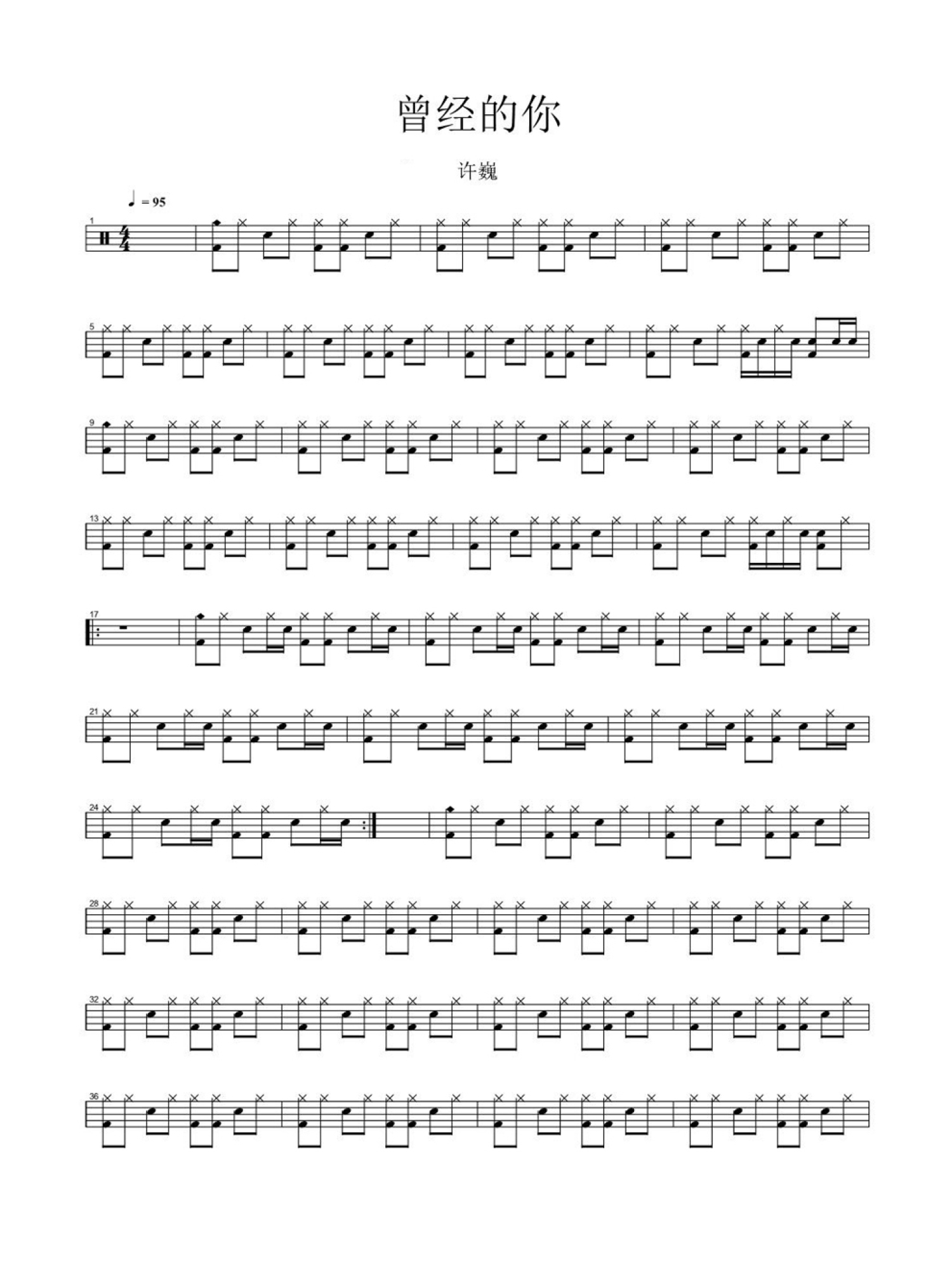 曲谱介绍: 曾经的你(鼓谱)-许巍