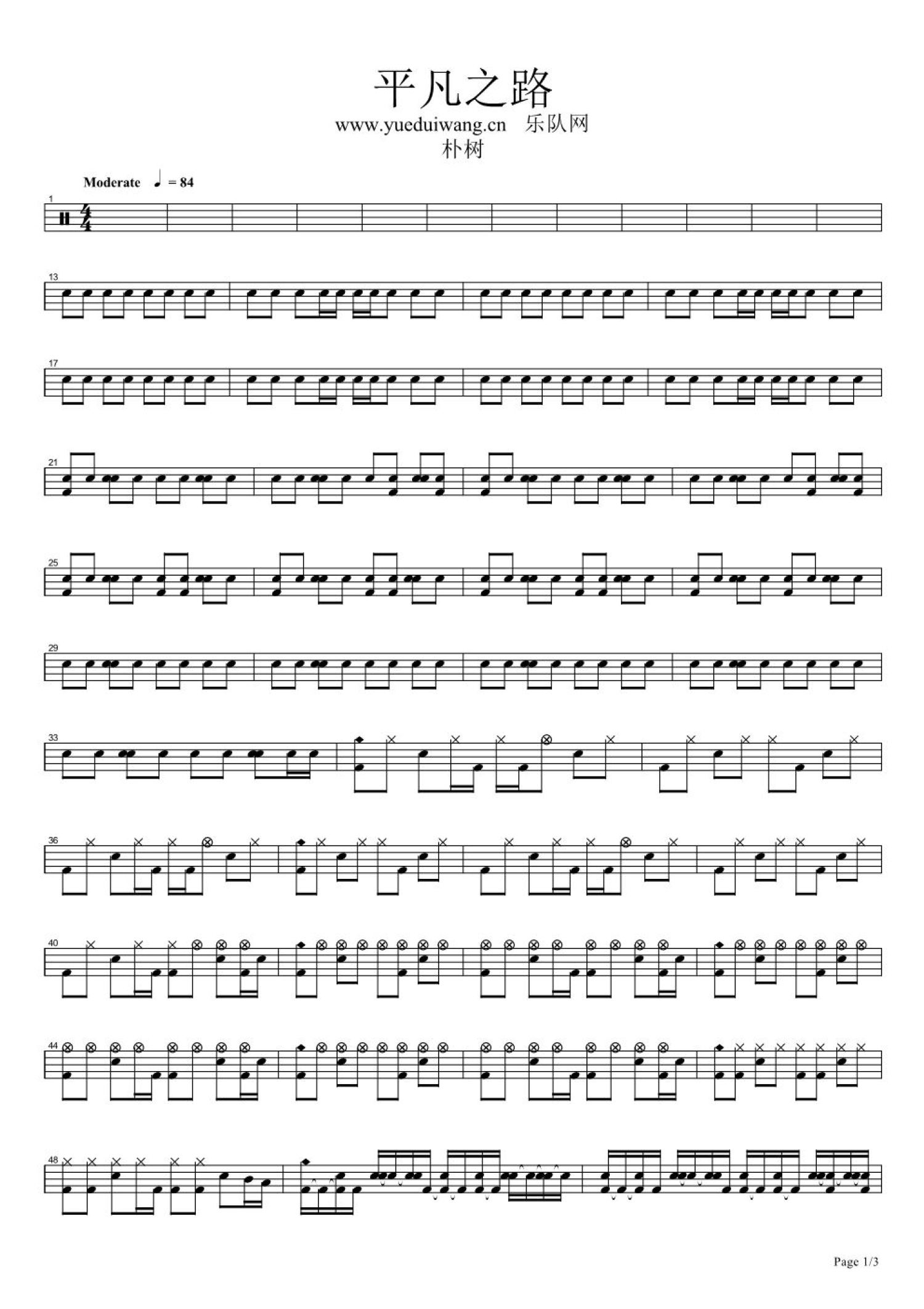 平凡之路鼓谱 - 朴树 - 架子鼓谱