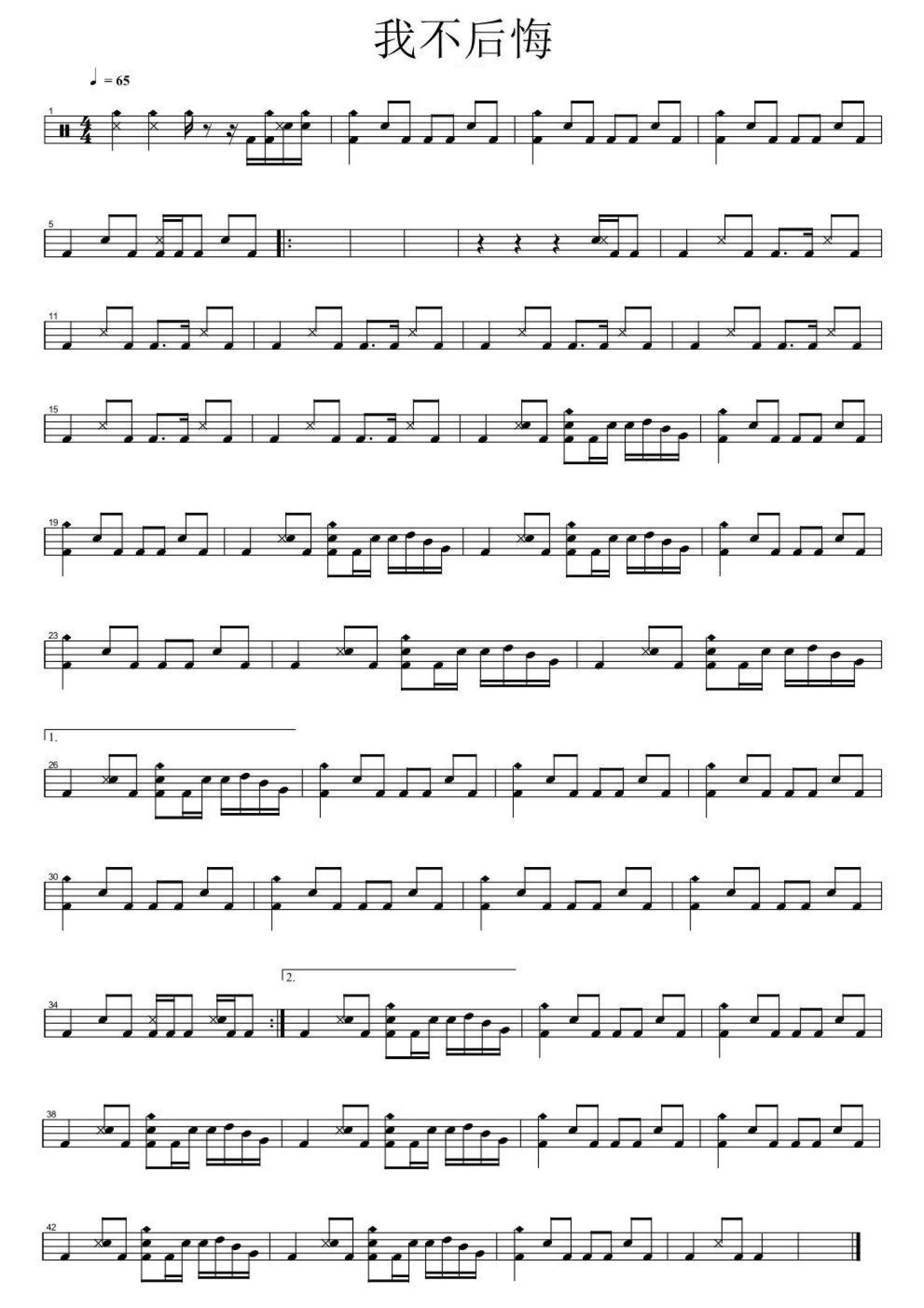 当前位置:琴谱网>架子鼓谱>我不后悔