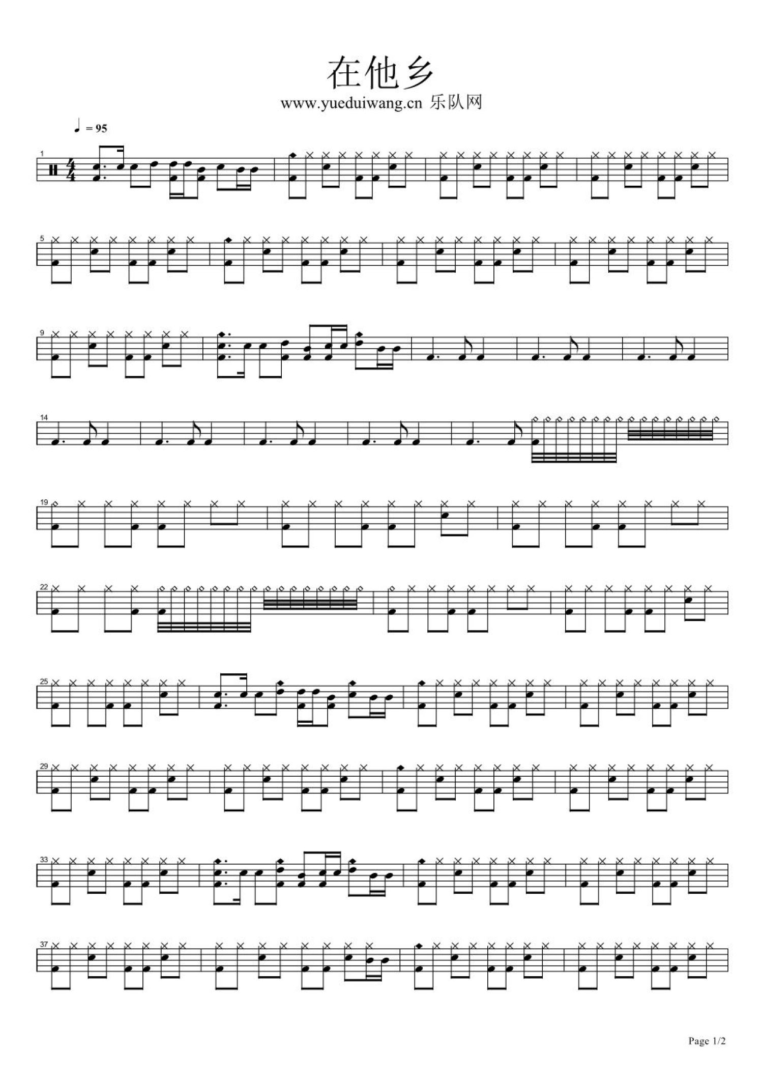 当前位置:琴谱网>架子鼓谱>在他乡