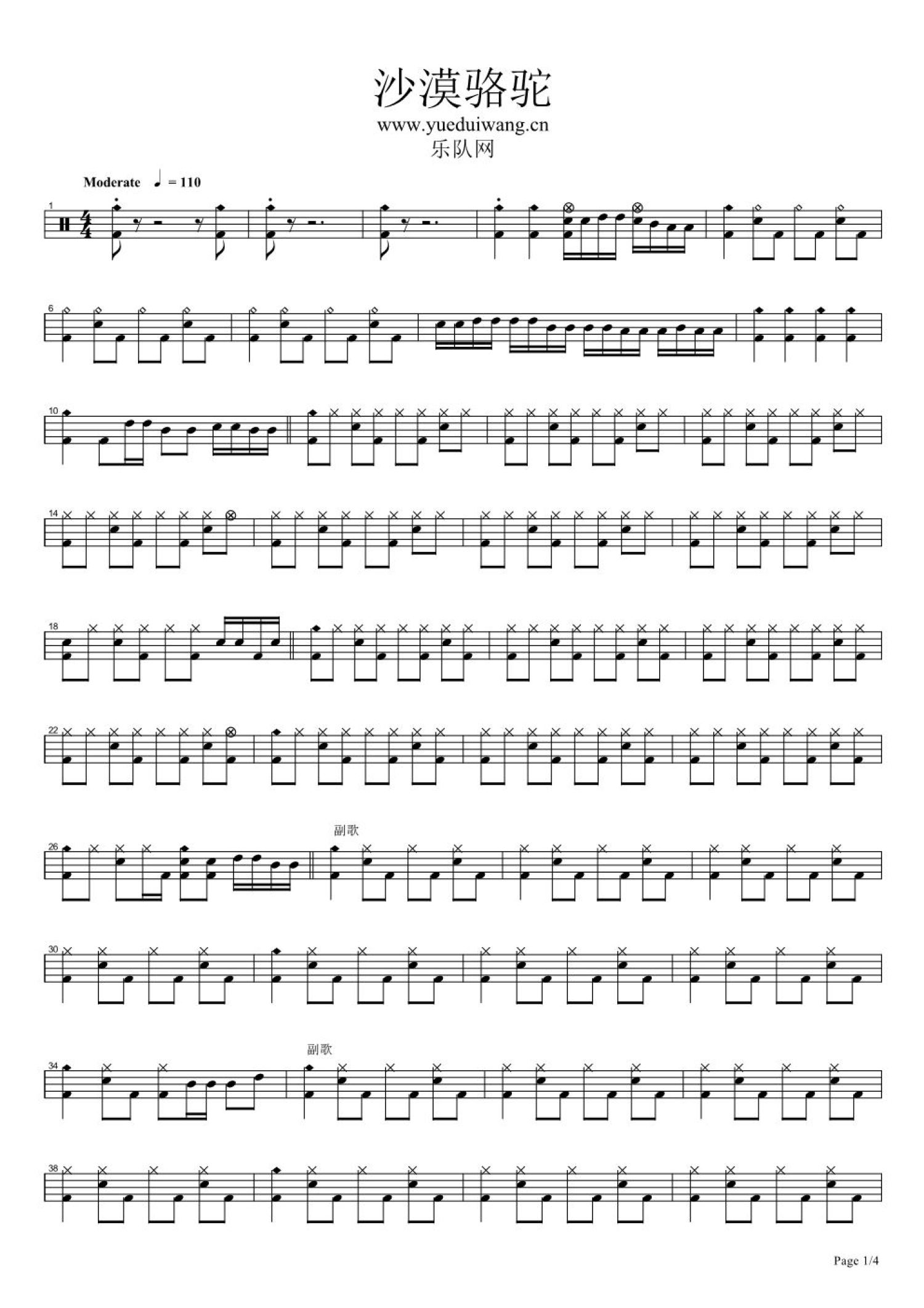 当前位置:琴谱网>架子鼓谱>沙漠骆驼