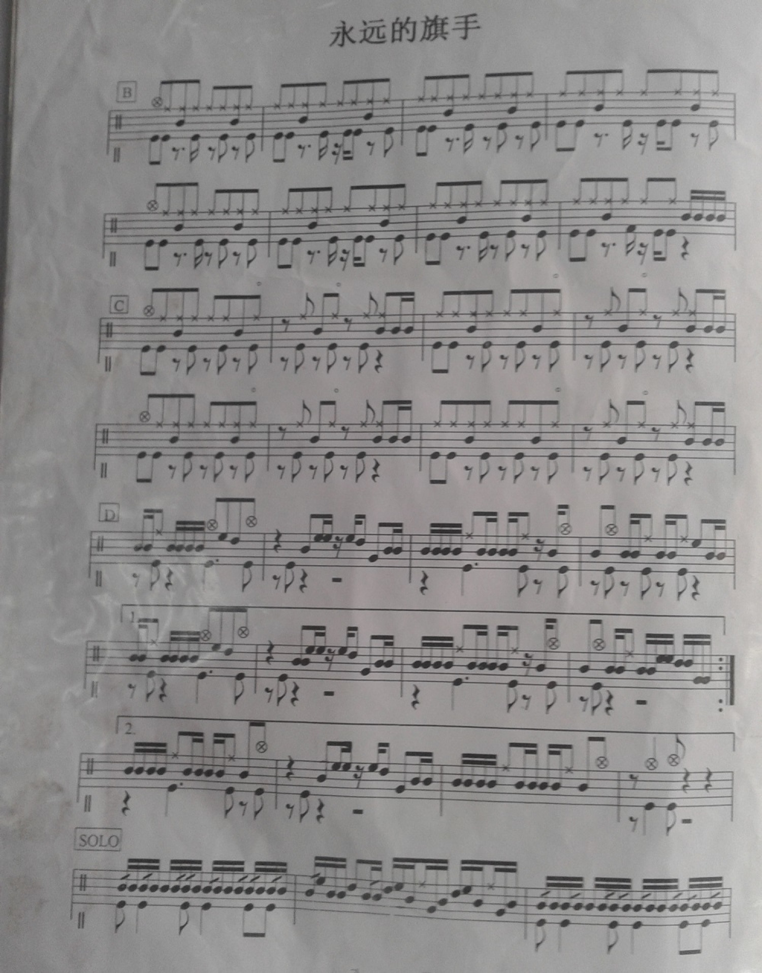 曲谱介绍: 永远的旗手(架子鼓谱)-九拍