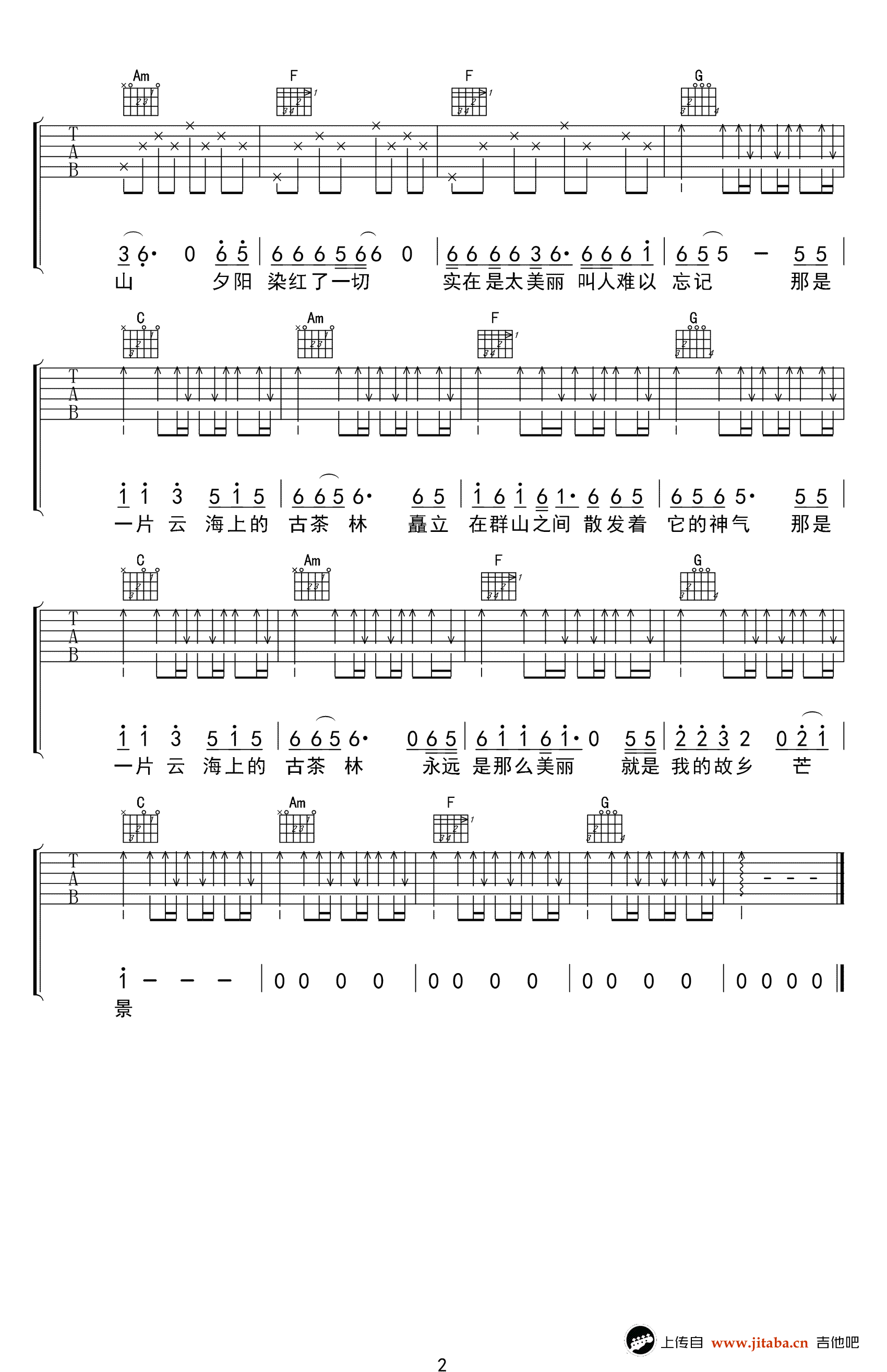 曲谱介绍: 倪华《云海上的古茶林》吉他谱,C调指法,Capo夹一品,高清弹唱图片谱,普洱茶的芒景山脉景色优美,每天早上的云海让人迷醉,这是民谣音乐人为自己家乡创作的一首歌,唱出对故乡的眷恋和热爱。