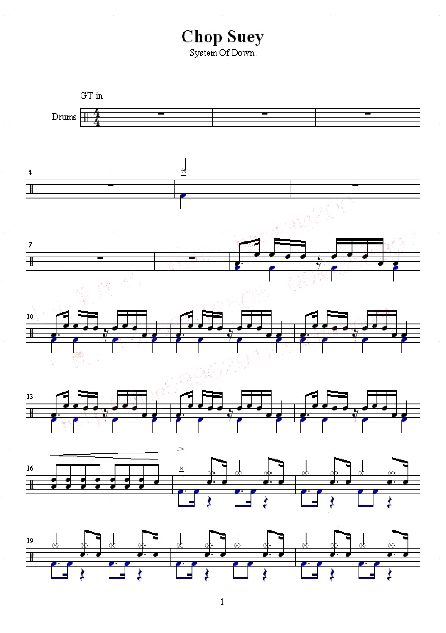 曲谱介绍: Chopsuey(架子鼓谱)-SystemofaDown