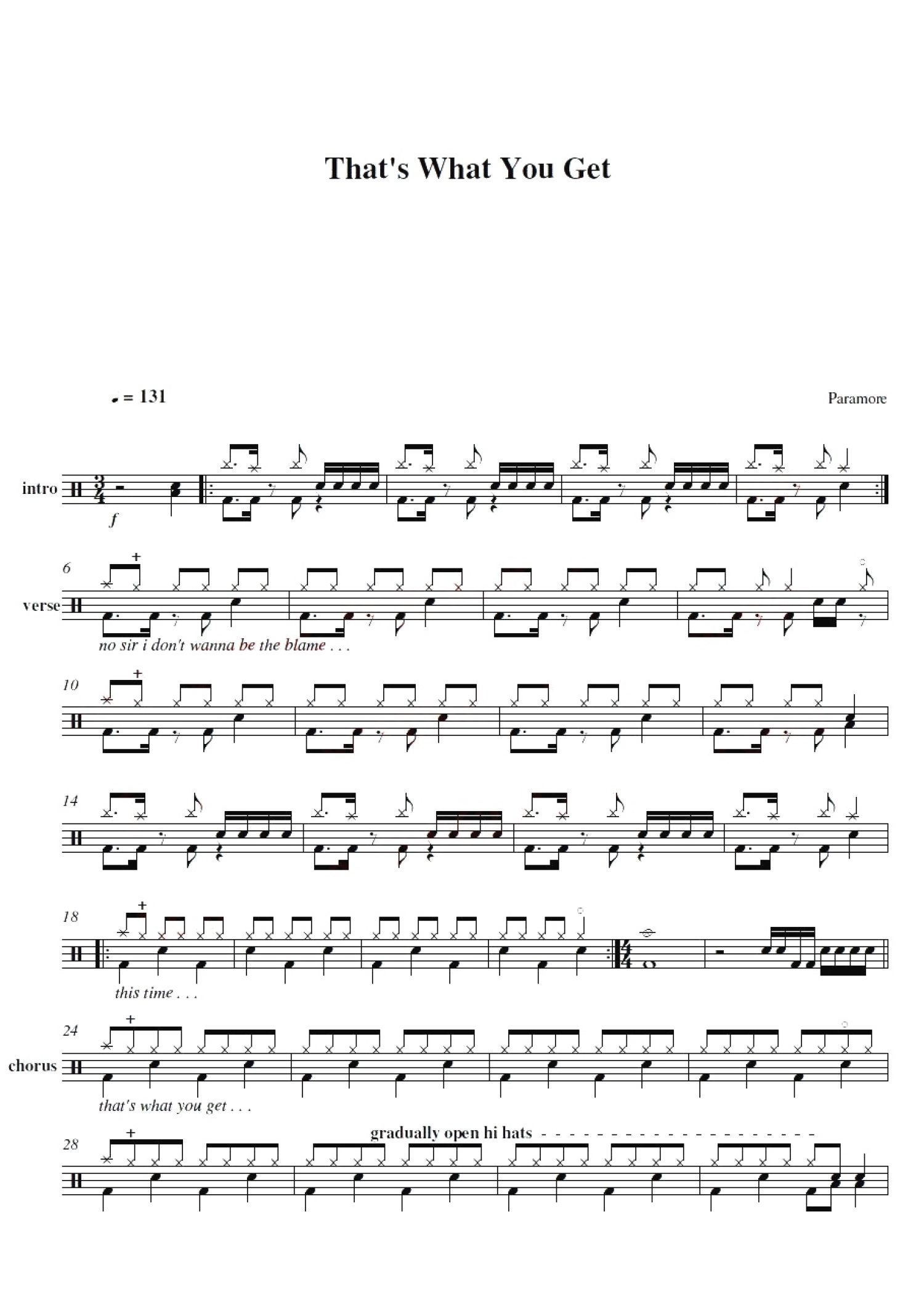 曲谱介绍: That'sWhatYouGet(架子鼓谱)