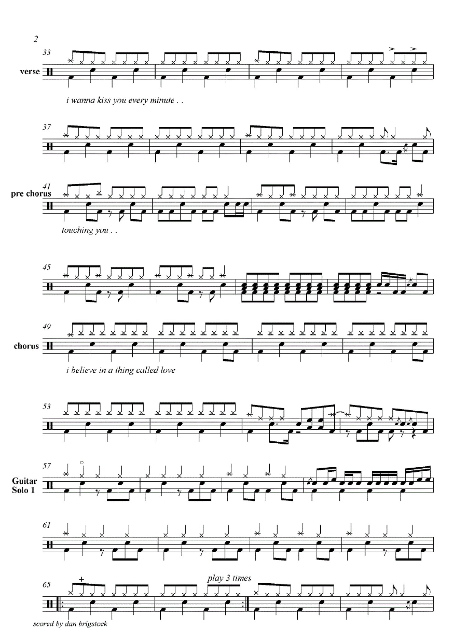 曲谱介绍: I Believe in a Thing Called Love(架子鼓谱)-The Darkness