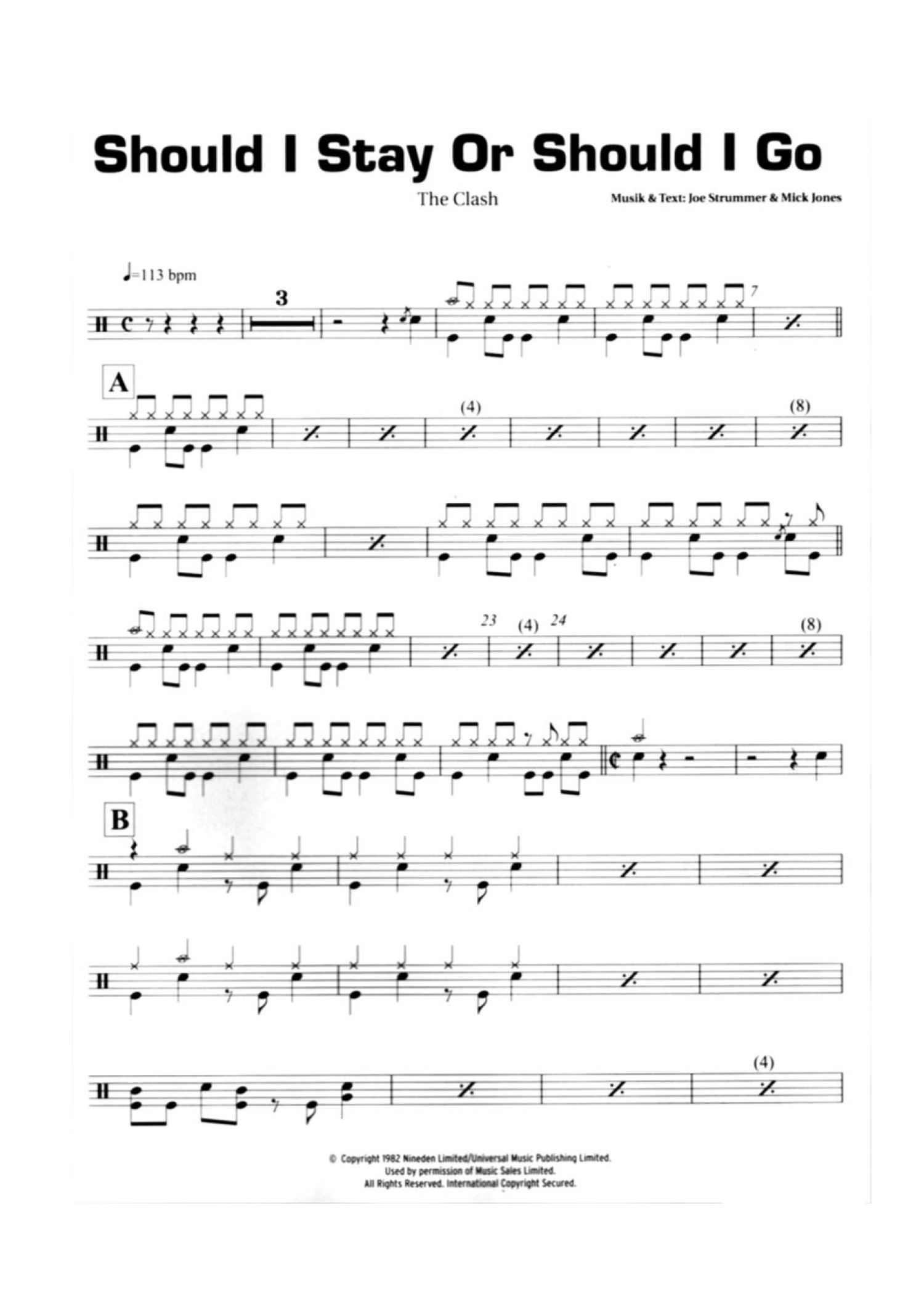 曲谱介绍: Should I Stay Or Should I Go(架子鼓谱)-The Clash