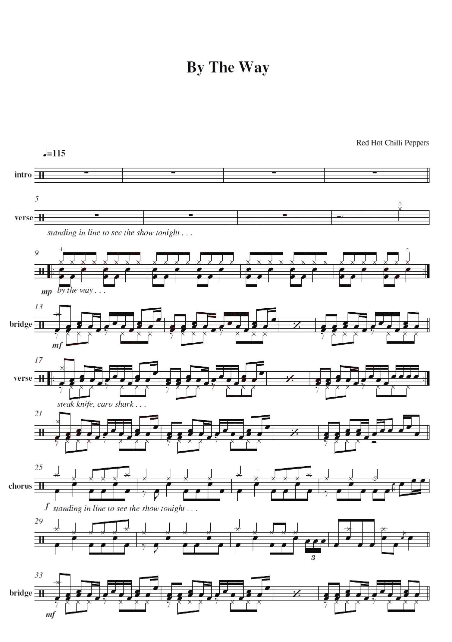 曲谱介绍: By the Way(架子鼓谱)-Red Hot Chili Peppers