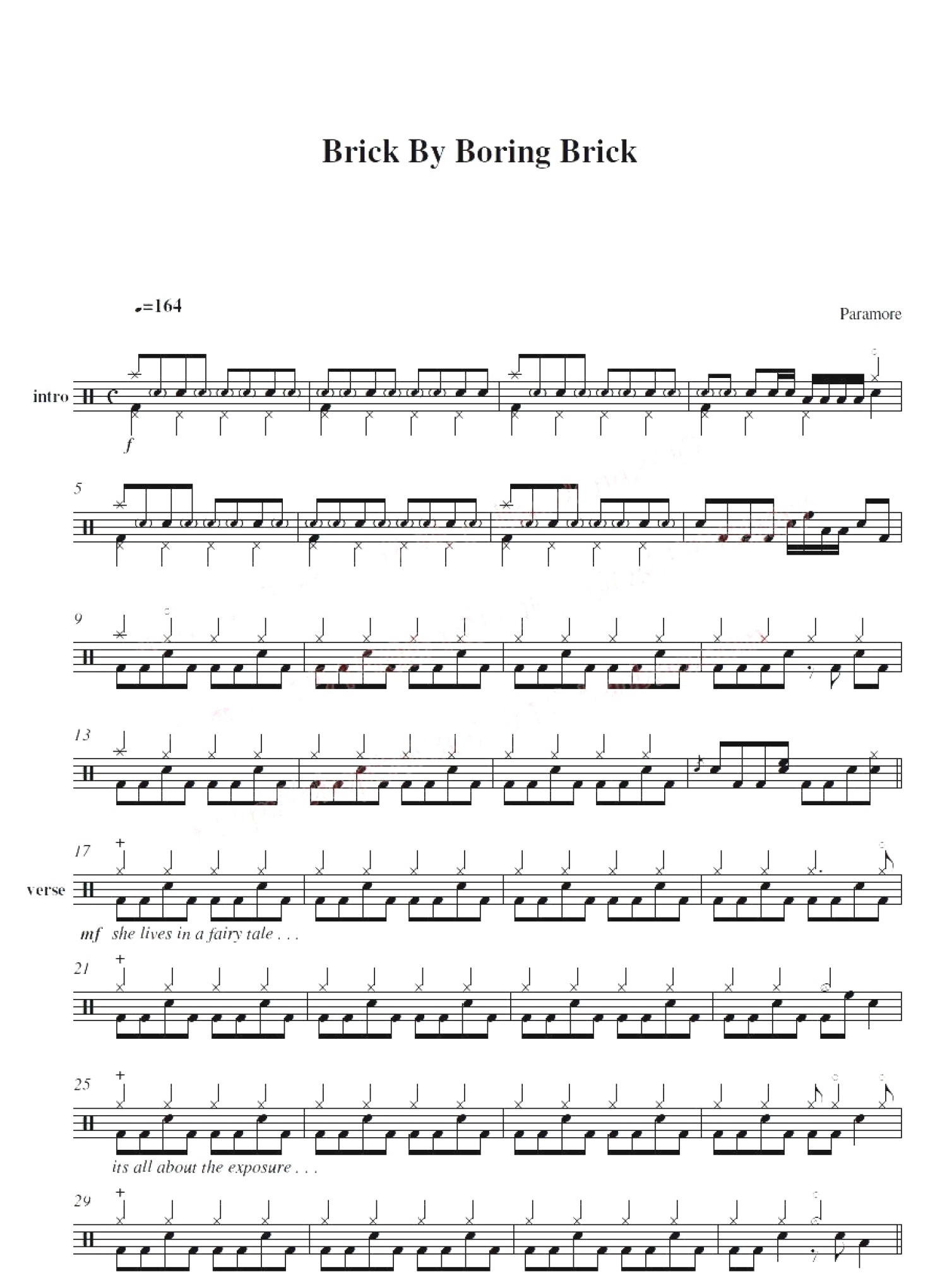 曲谱介绍: Brick By Boring Brick(架子鼓谱)-Paramore
