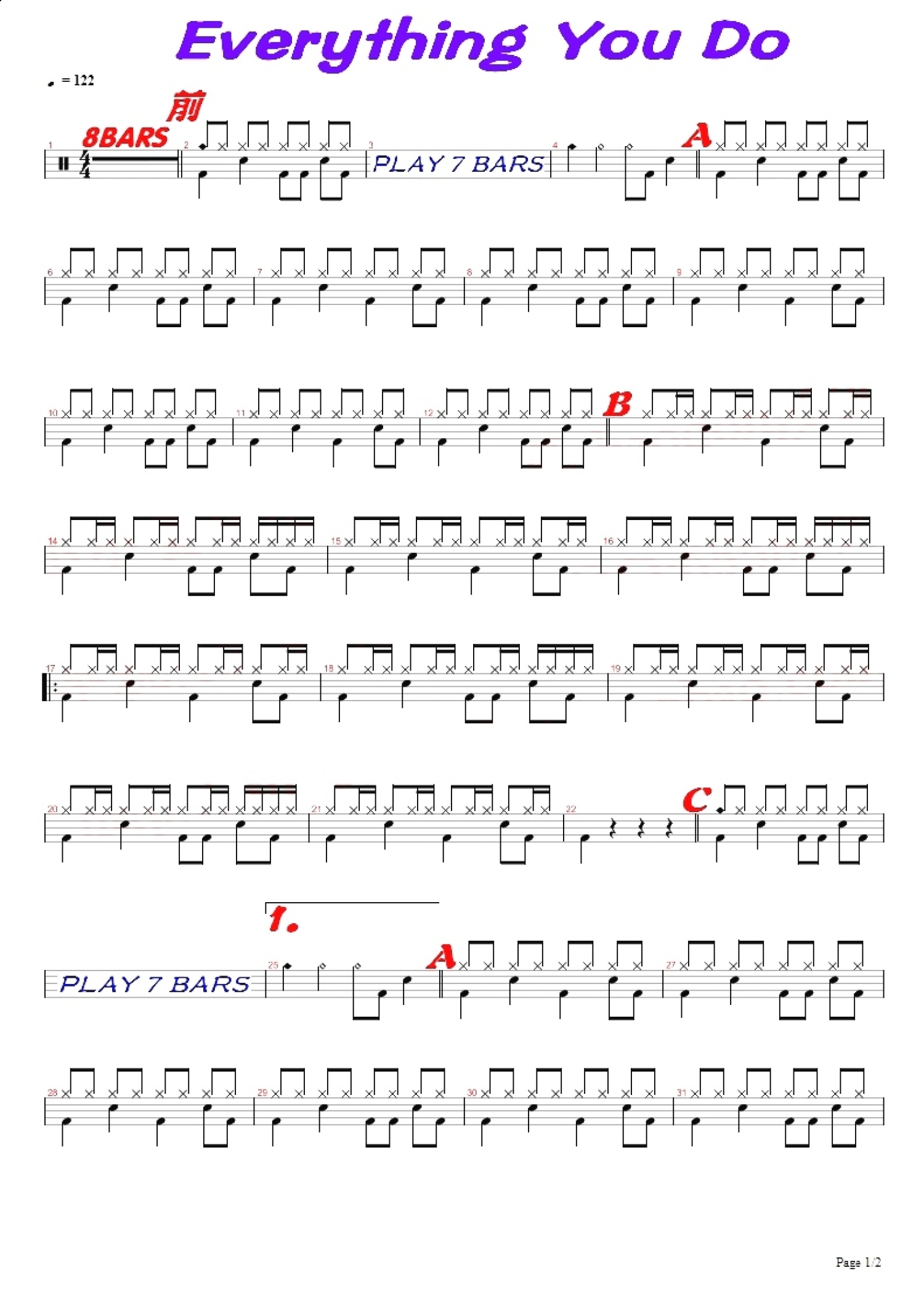 曲谱介绍: Everything You Do(架子鼓谱)-M2M