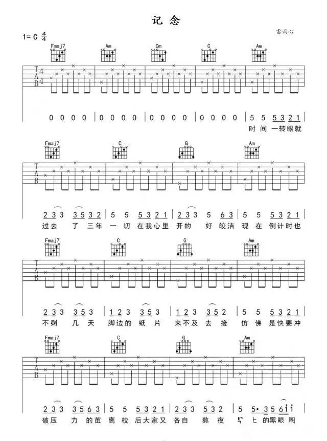 记念吉他谱 - 雷雨心 - 吉他弹唱谱