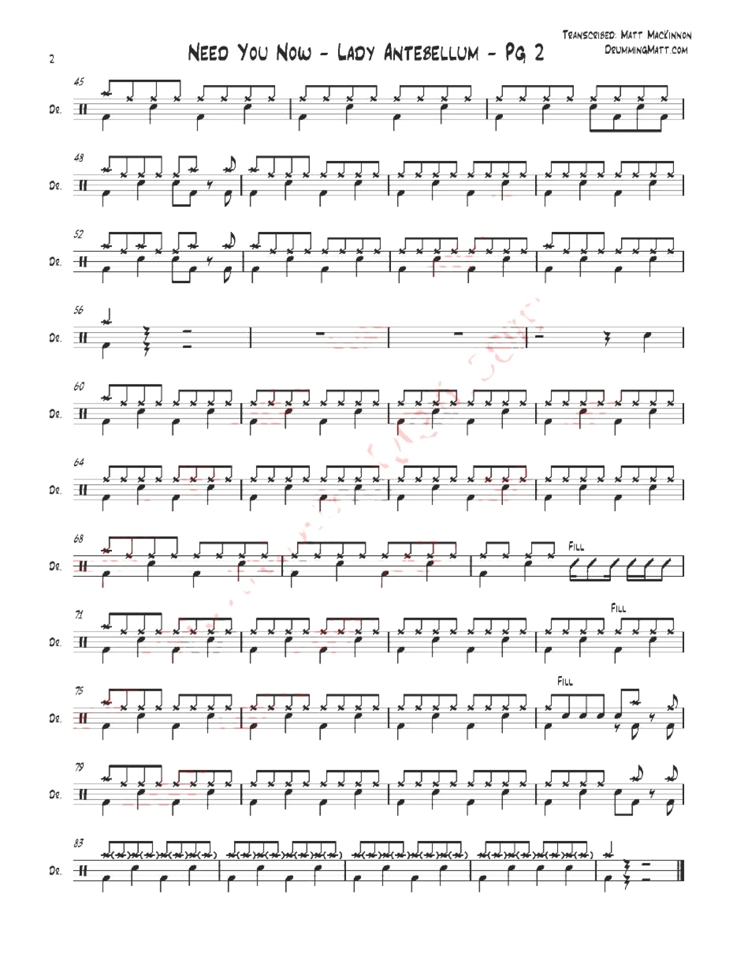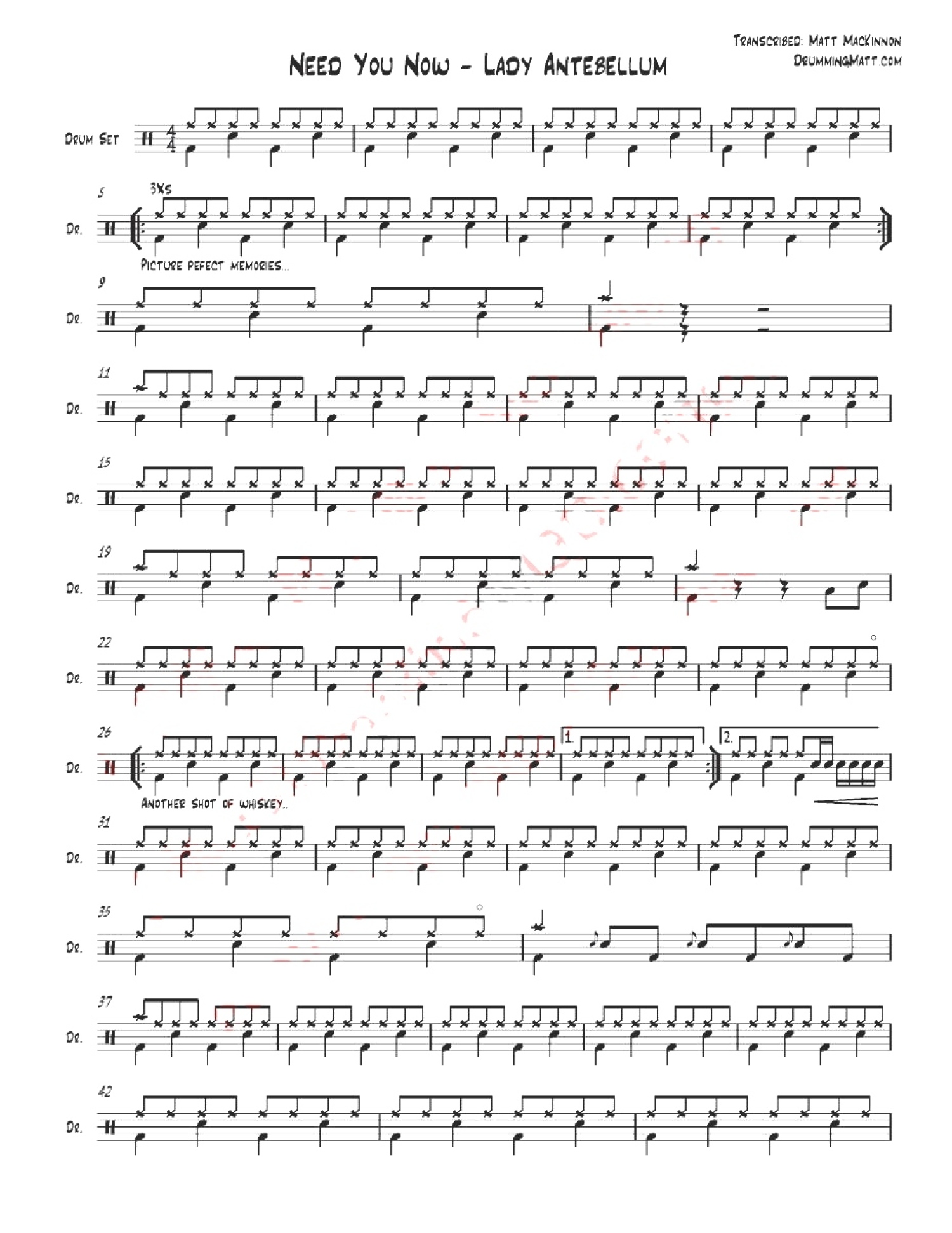 曲谱介绍: Need You Now(架子鼓谱)-Lady Antebellum