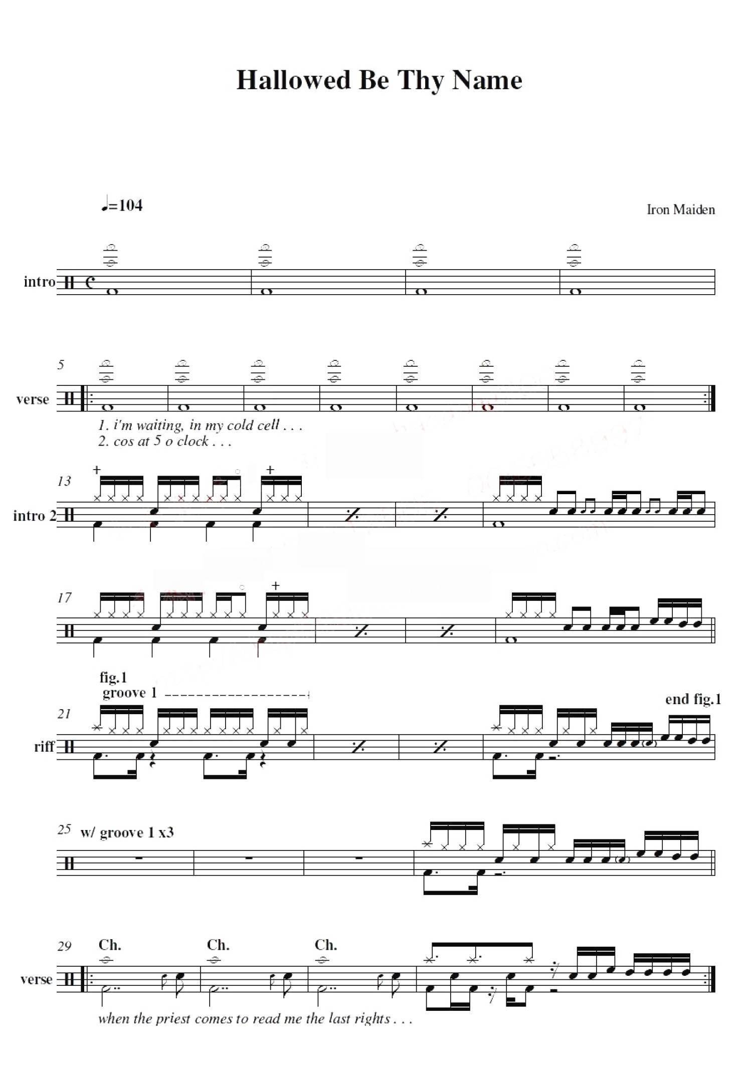 Hallowed Be Thy Name鼓谱 - Iron Maiden - 架子鼓谱