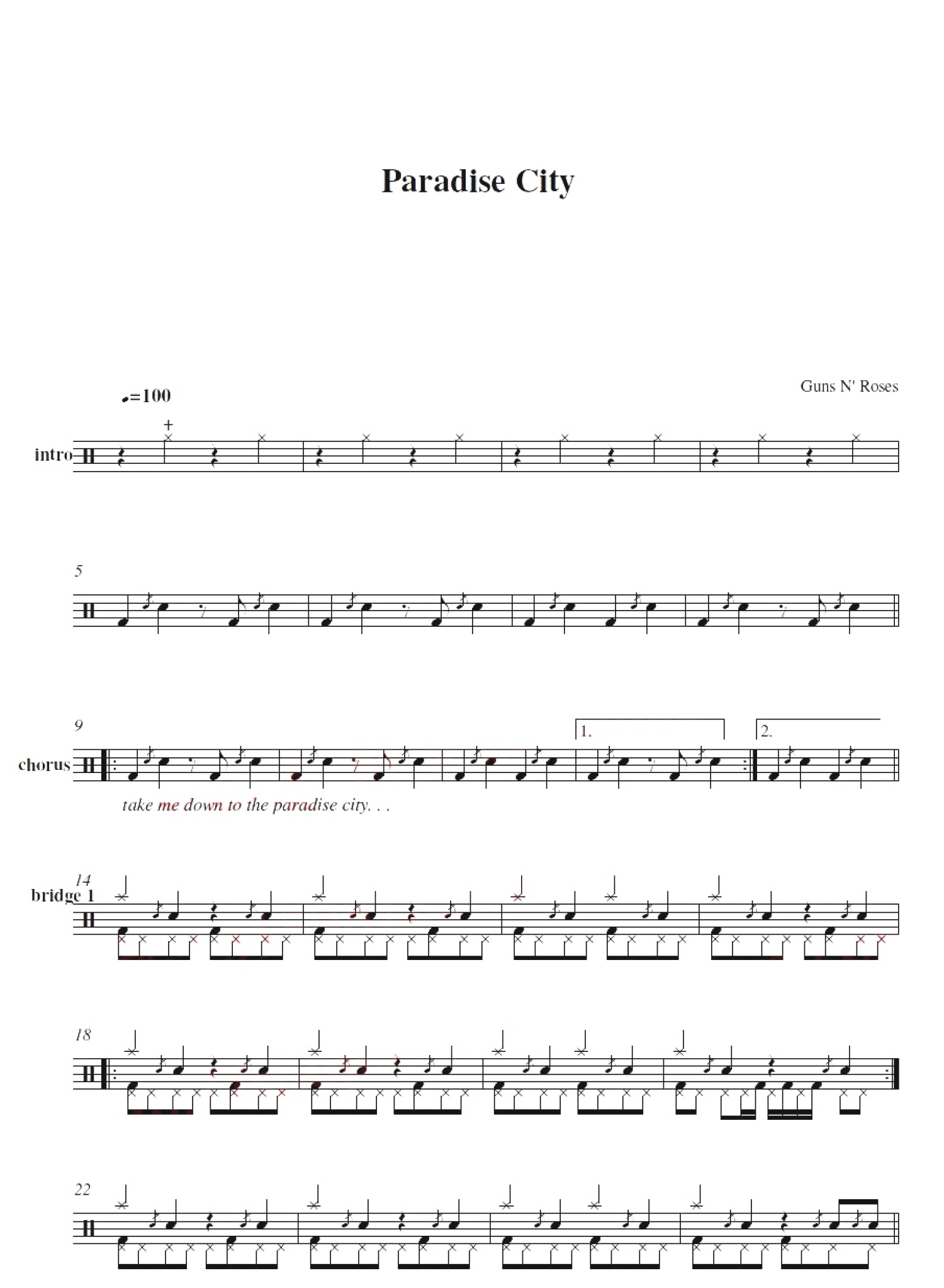 Paradise City鼓谱 - Guns N Roses - 架子鼓谱