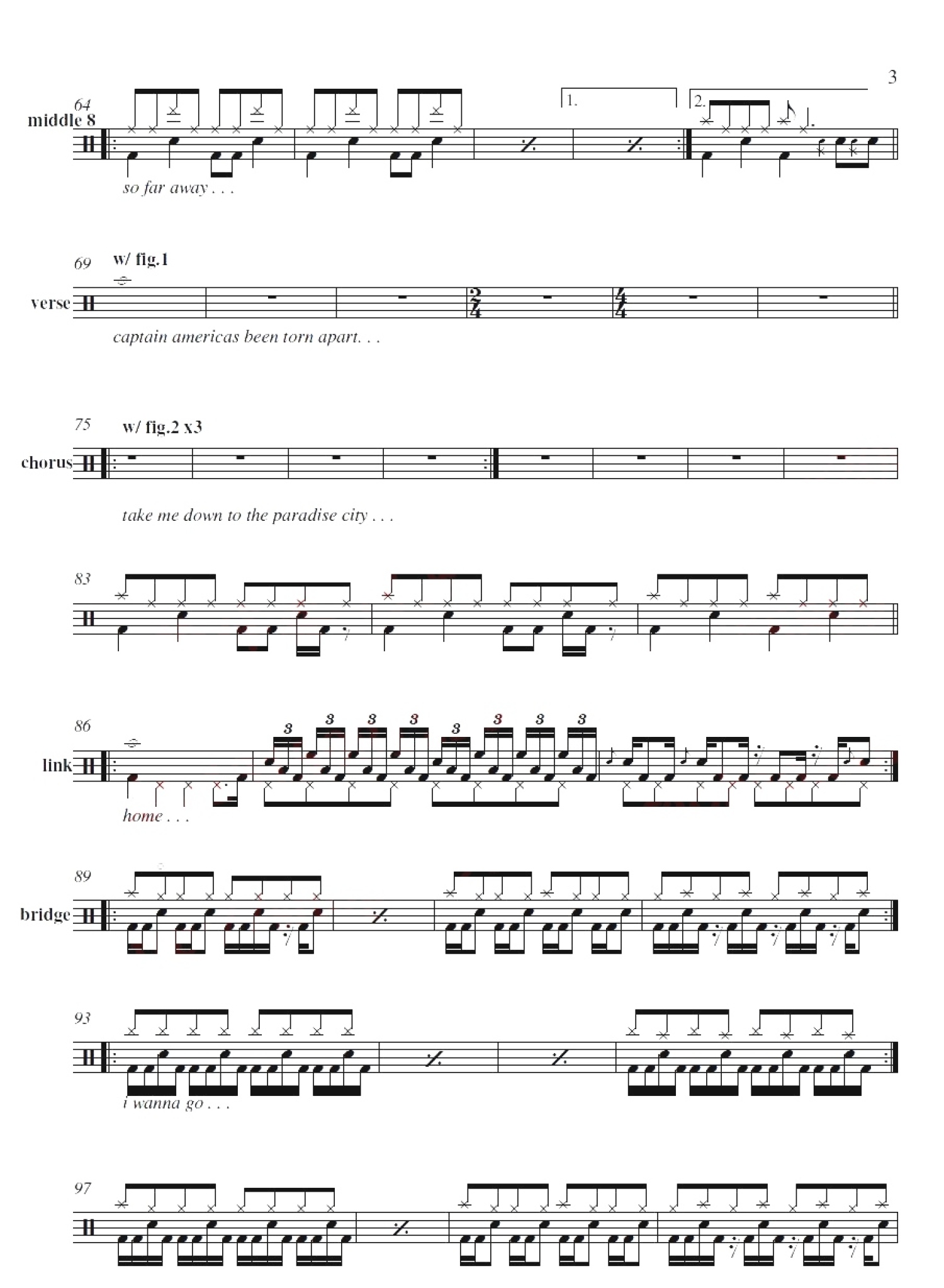 曲谱介绍: Paradise City(架子鼓谱)-Guns N Roses