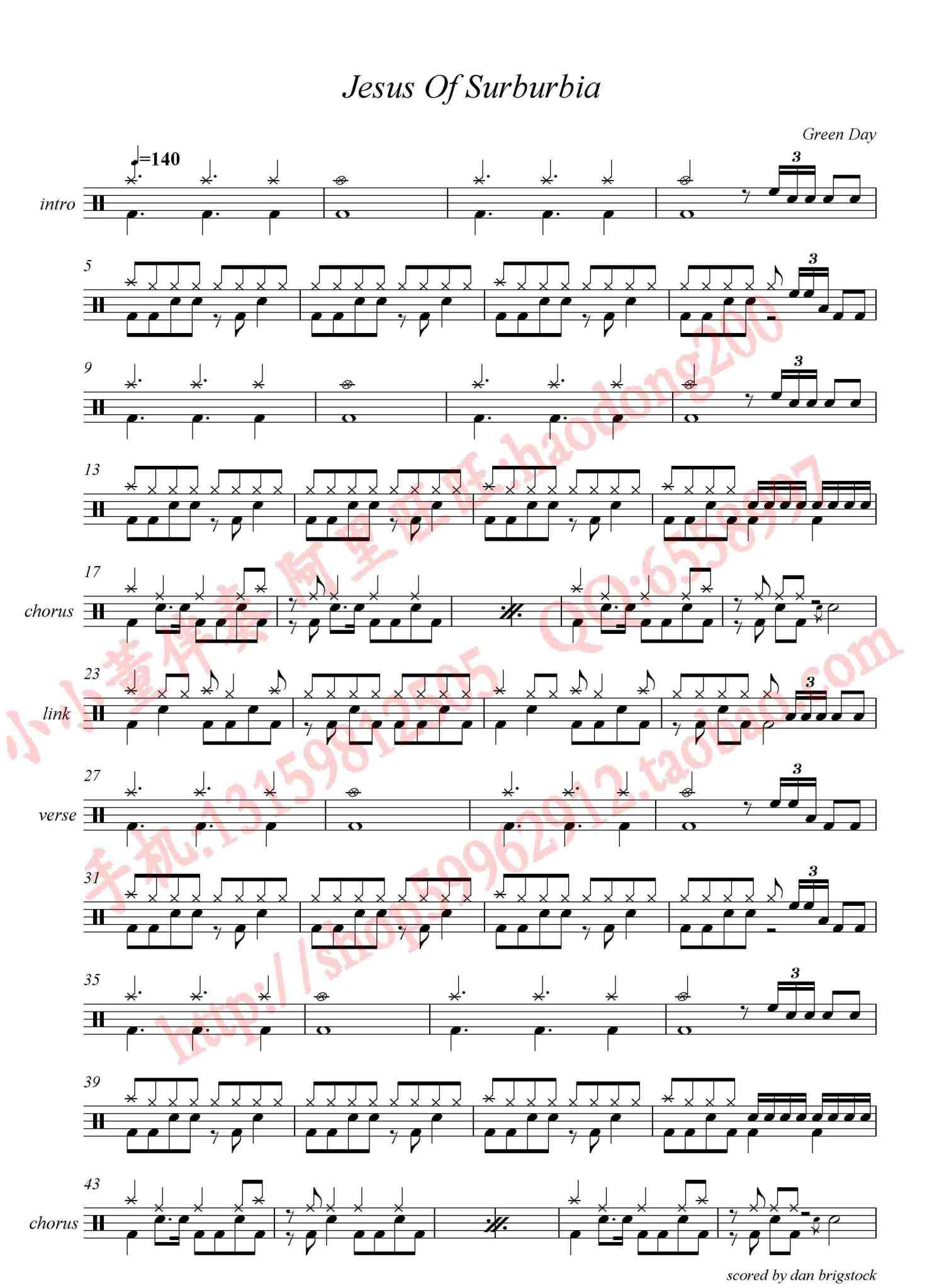 曲谱介绍: Jesus of Suburbia(架子鼓谱)-Green Day