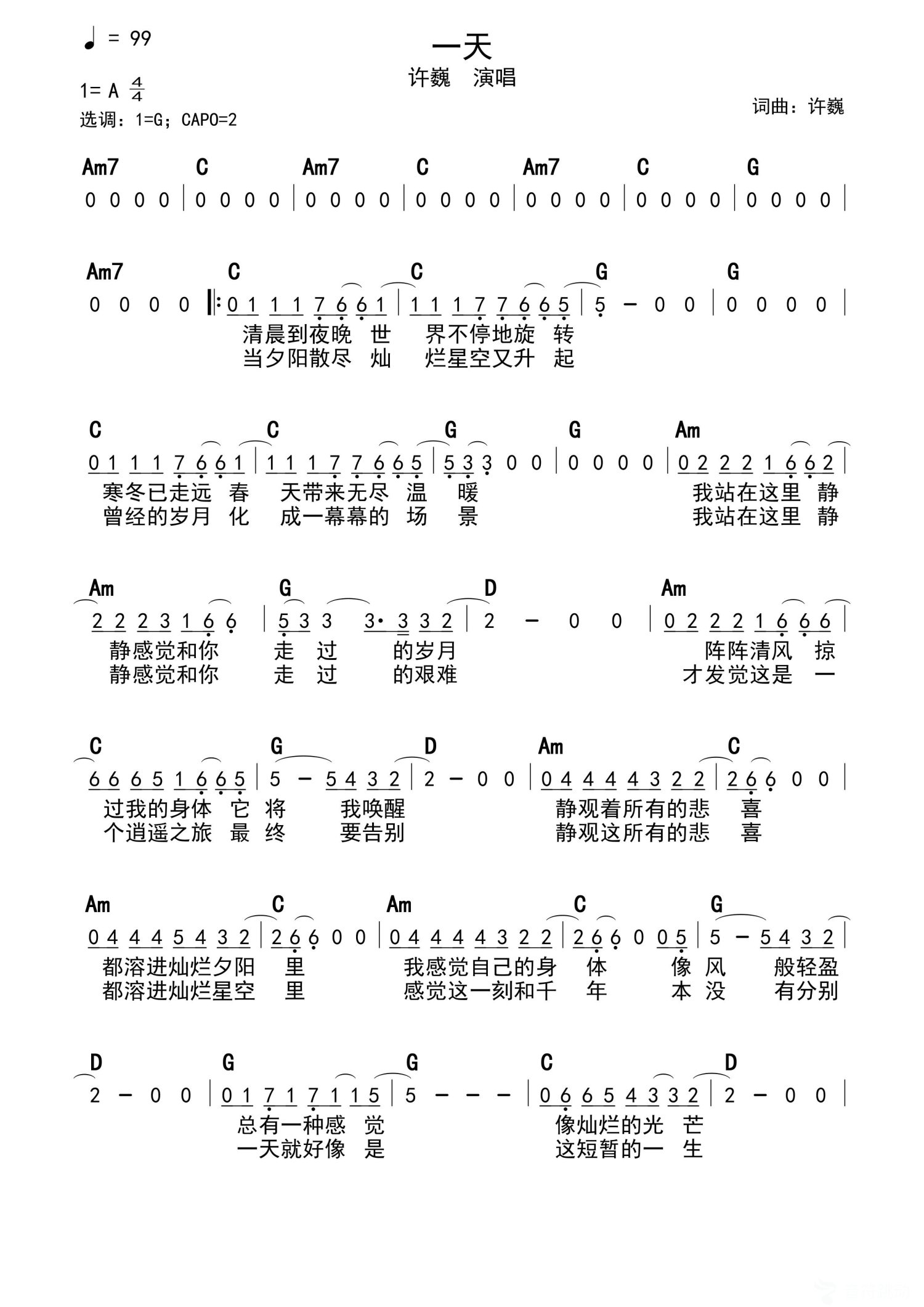 一天简谱 - 许巍