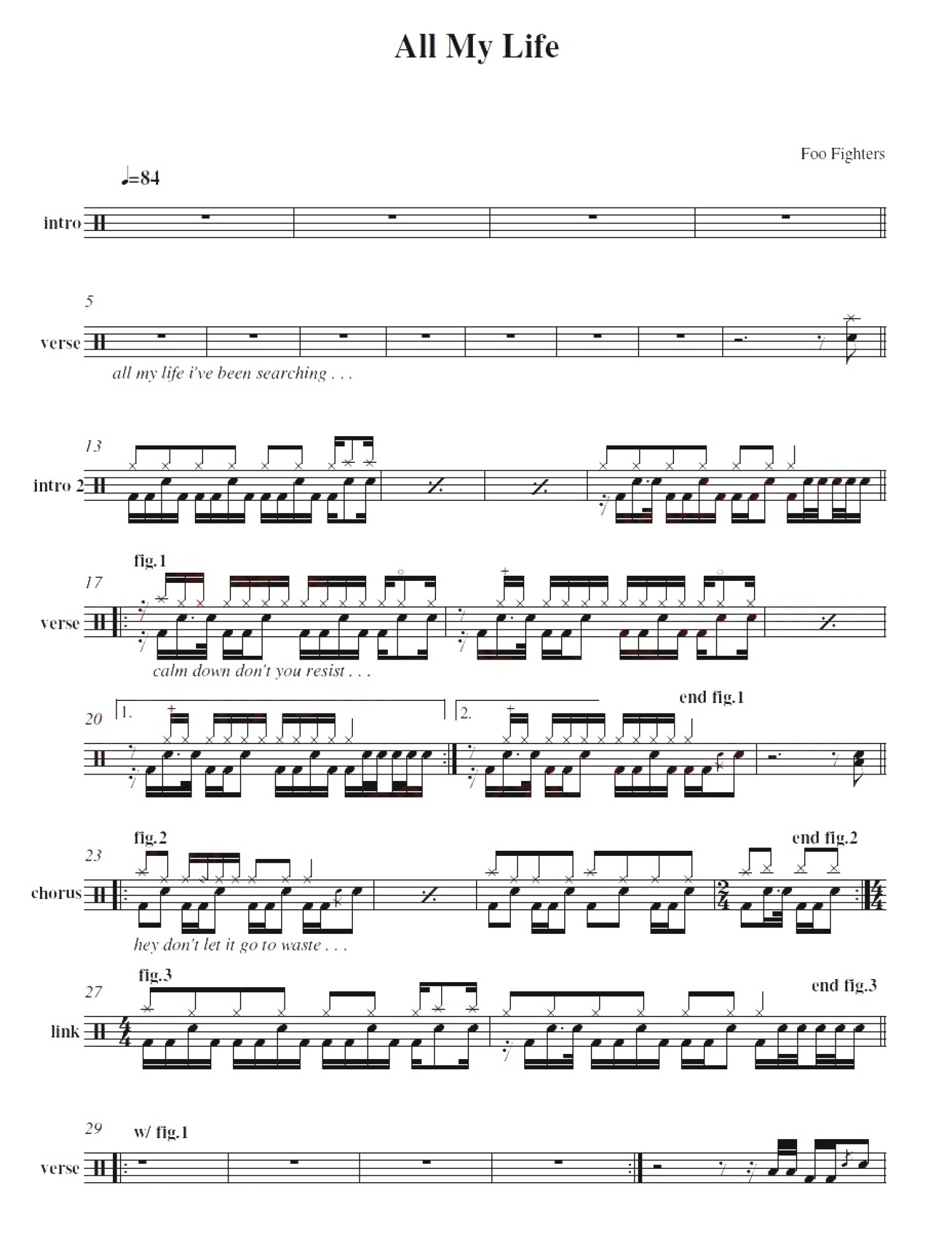 曲谱介绍: All My Life(架子鼓谱)-Foo Fighters