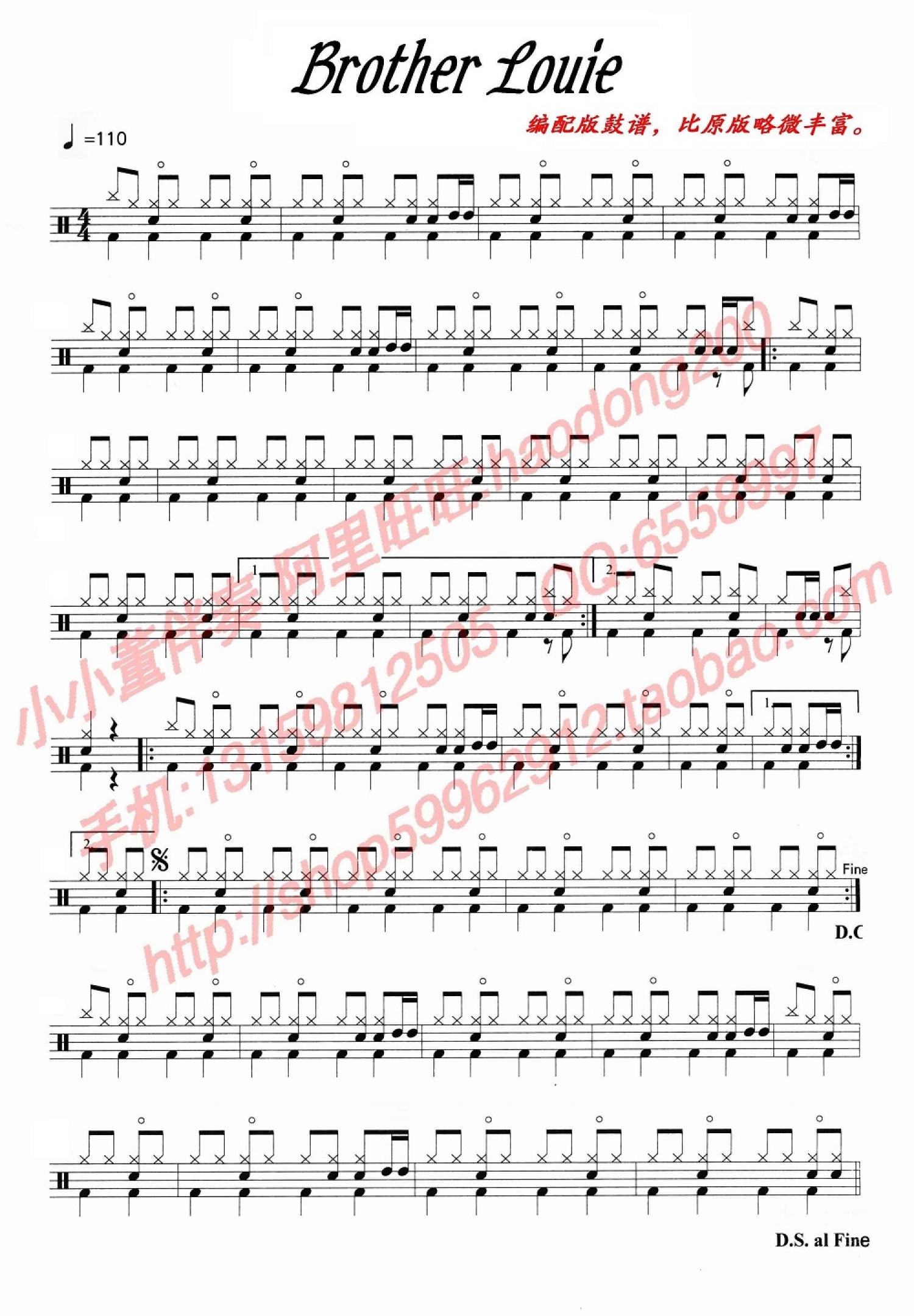 曲谱介绍: 路灯下的小姑娘英文版(架子鼓谱)