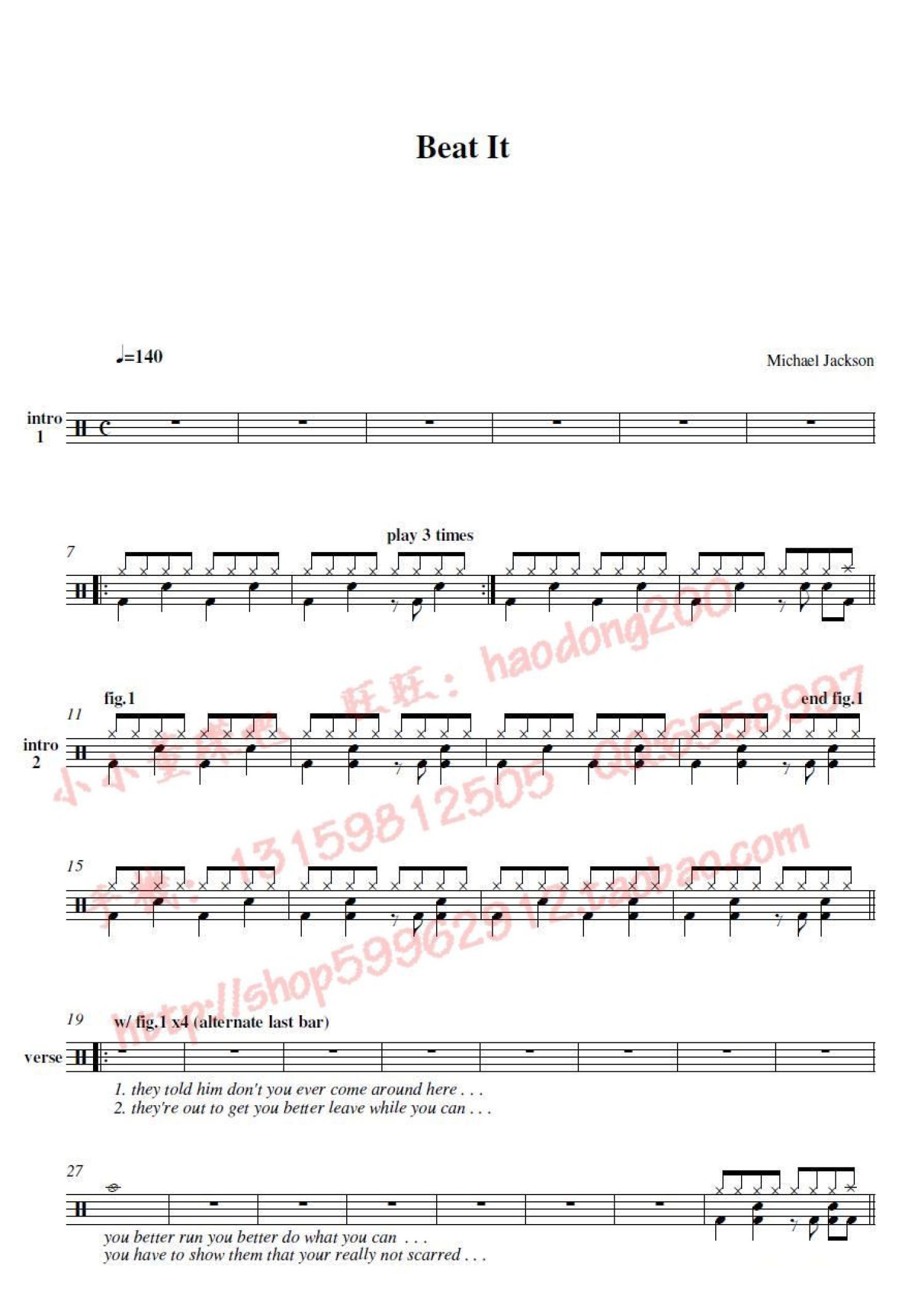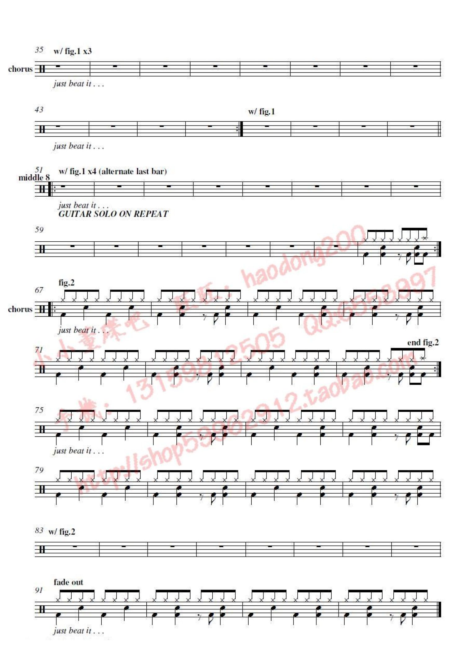 曲谱介绍: michael jackson beat it(架子鼓谱)