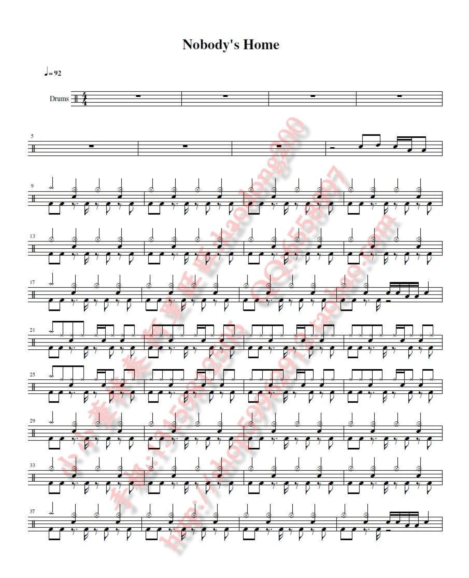 Nobody's Home鼓谱 - Avril Lavigne艾薇儿 - 架子鼓谱
