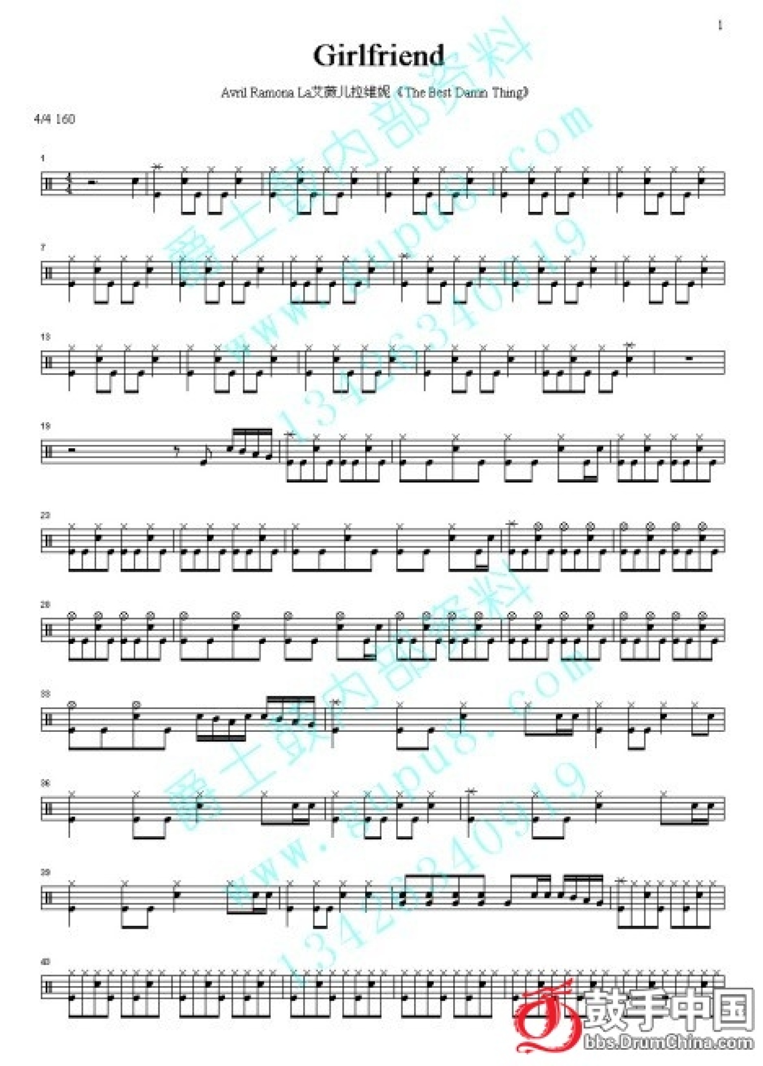 曲谱介绍: Girlfriend(架子鼓谱)Avril Lavigne艾薇儿
