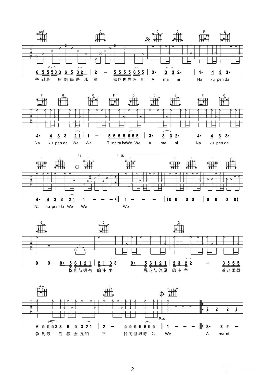 当前位置:琴谱网>吉他弹唱>AMANI