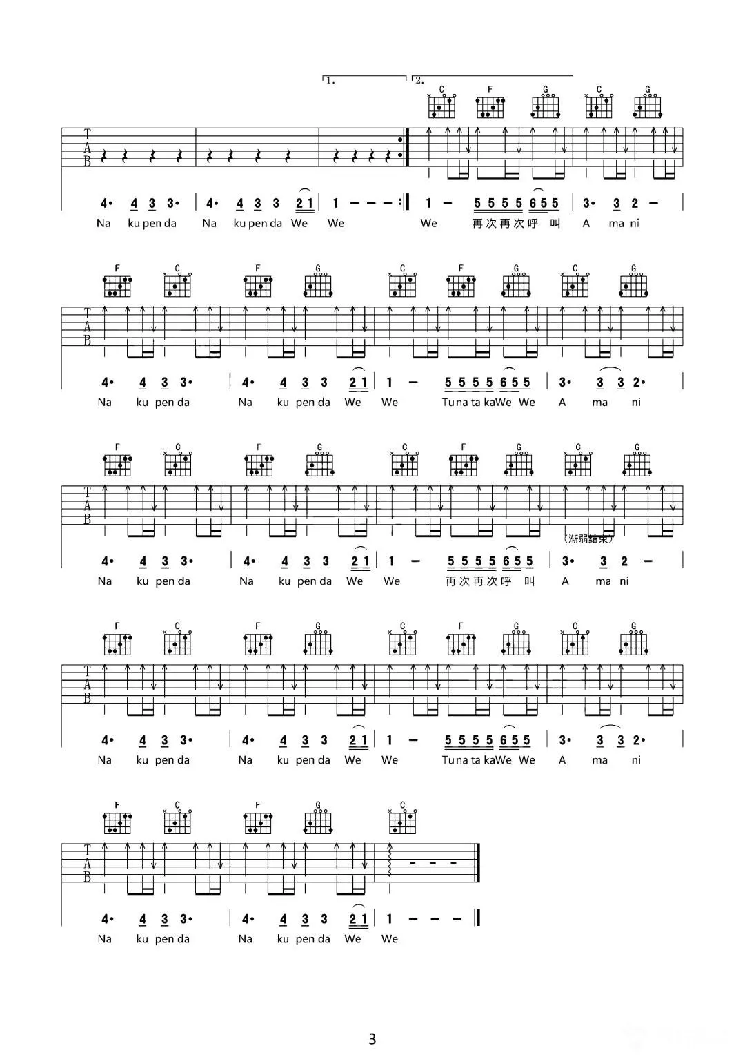 曲谱介绍: 王家驹《AMAN1》吉他弹唱谱,共有3张高清图谱。