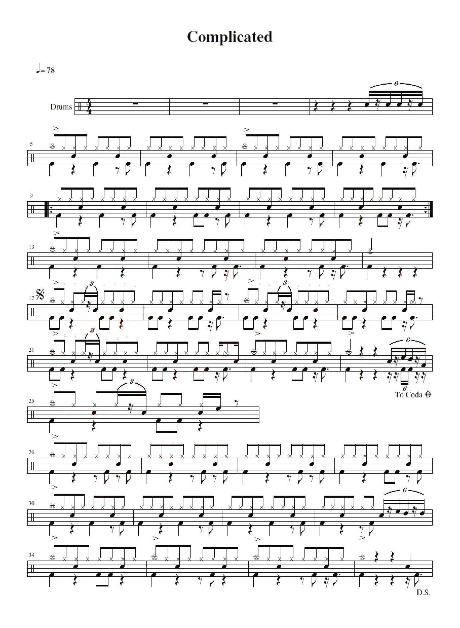 曲谱介绍: Complicated(架子鼓谱)Avril Lavigne艾薇儿