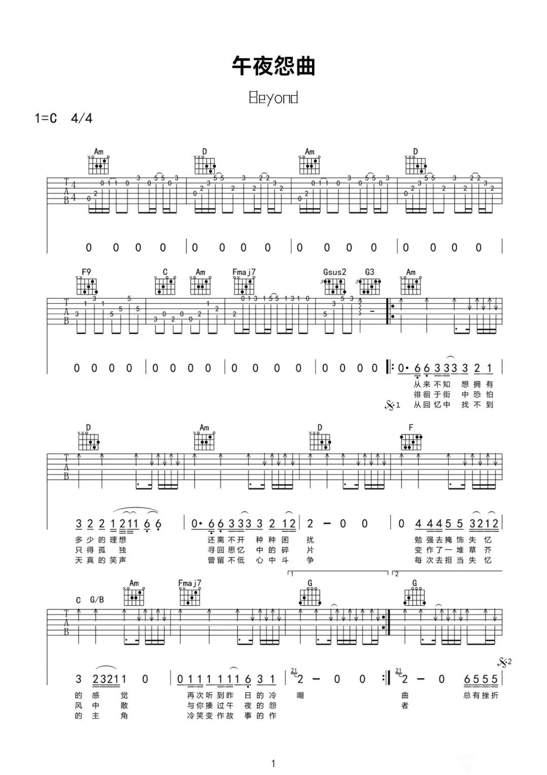 曲谱介绍: 王家驹《午夜怨曲》吉他弹唱谱,共有2张高清图谱,免翻页排版设计。