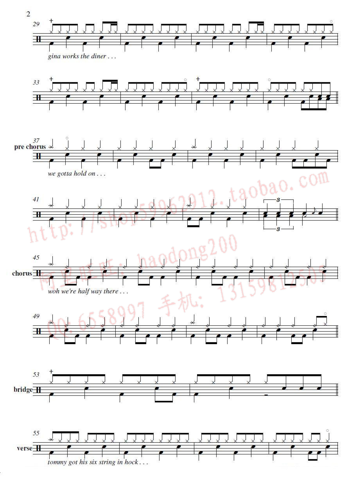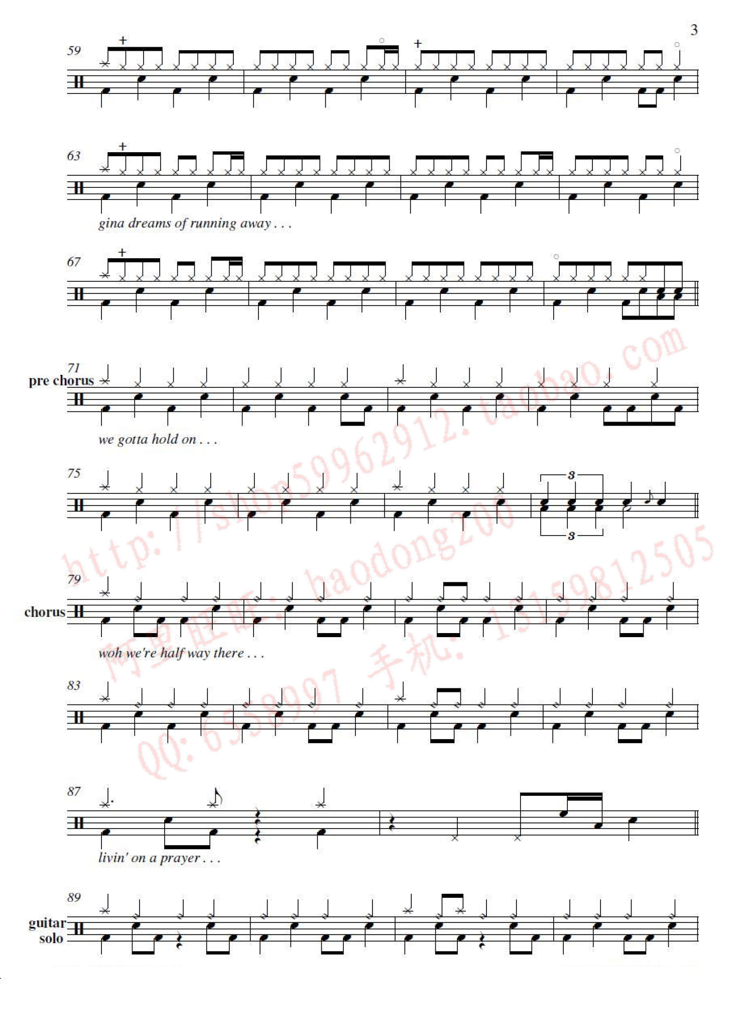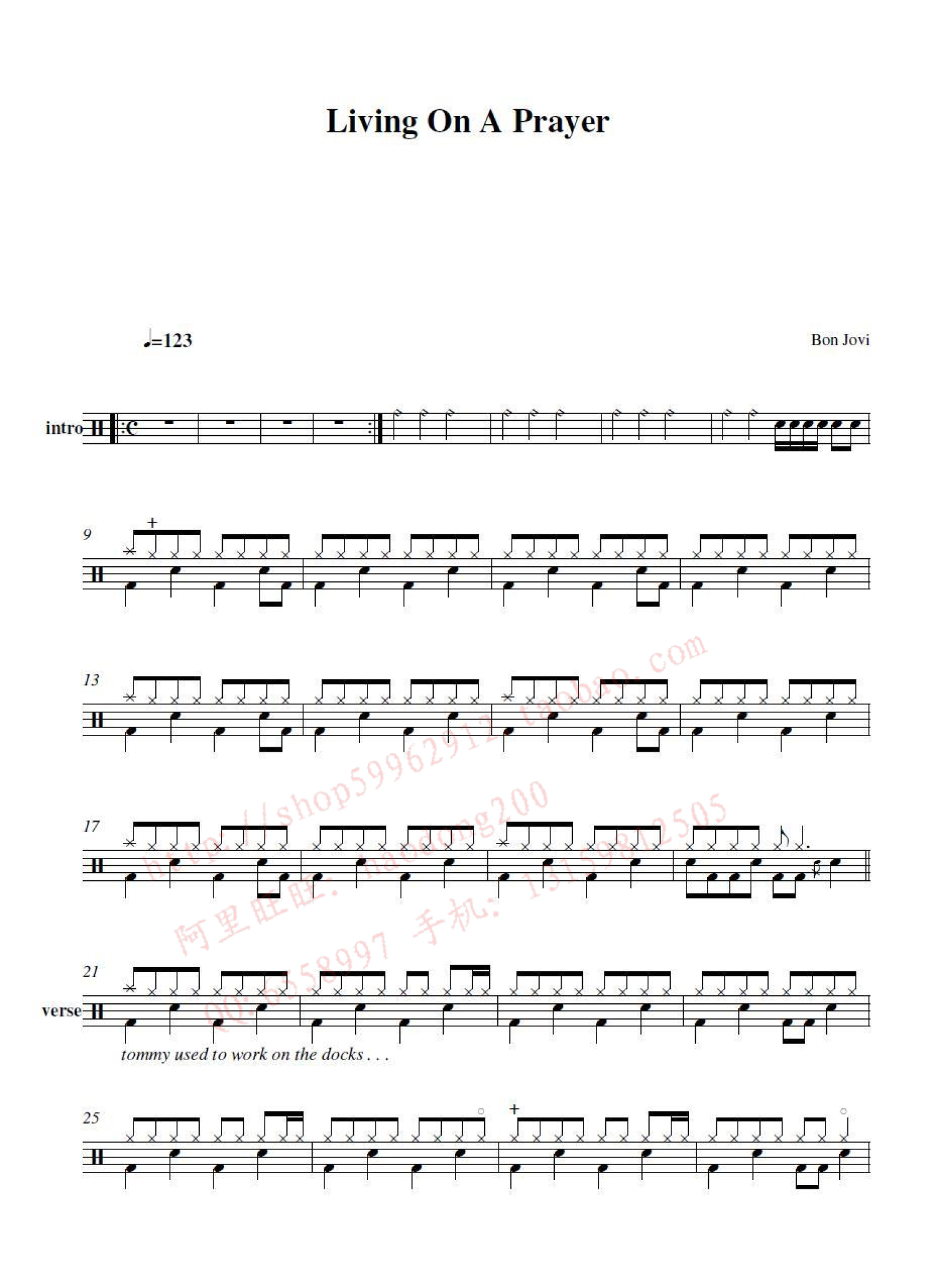 曲谱介绍: Livin' on a Prayer并用在祈祷(架子鼓谱)-Bon Jovi-邦・乔维