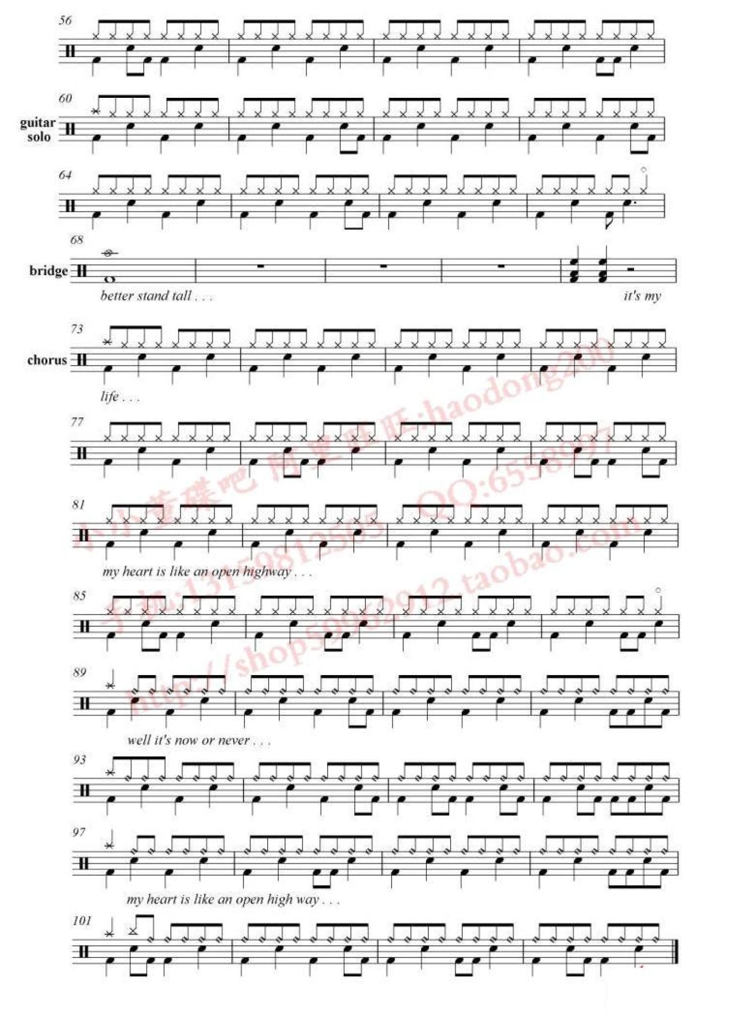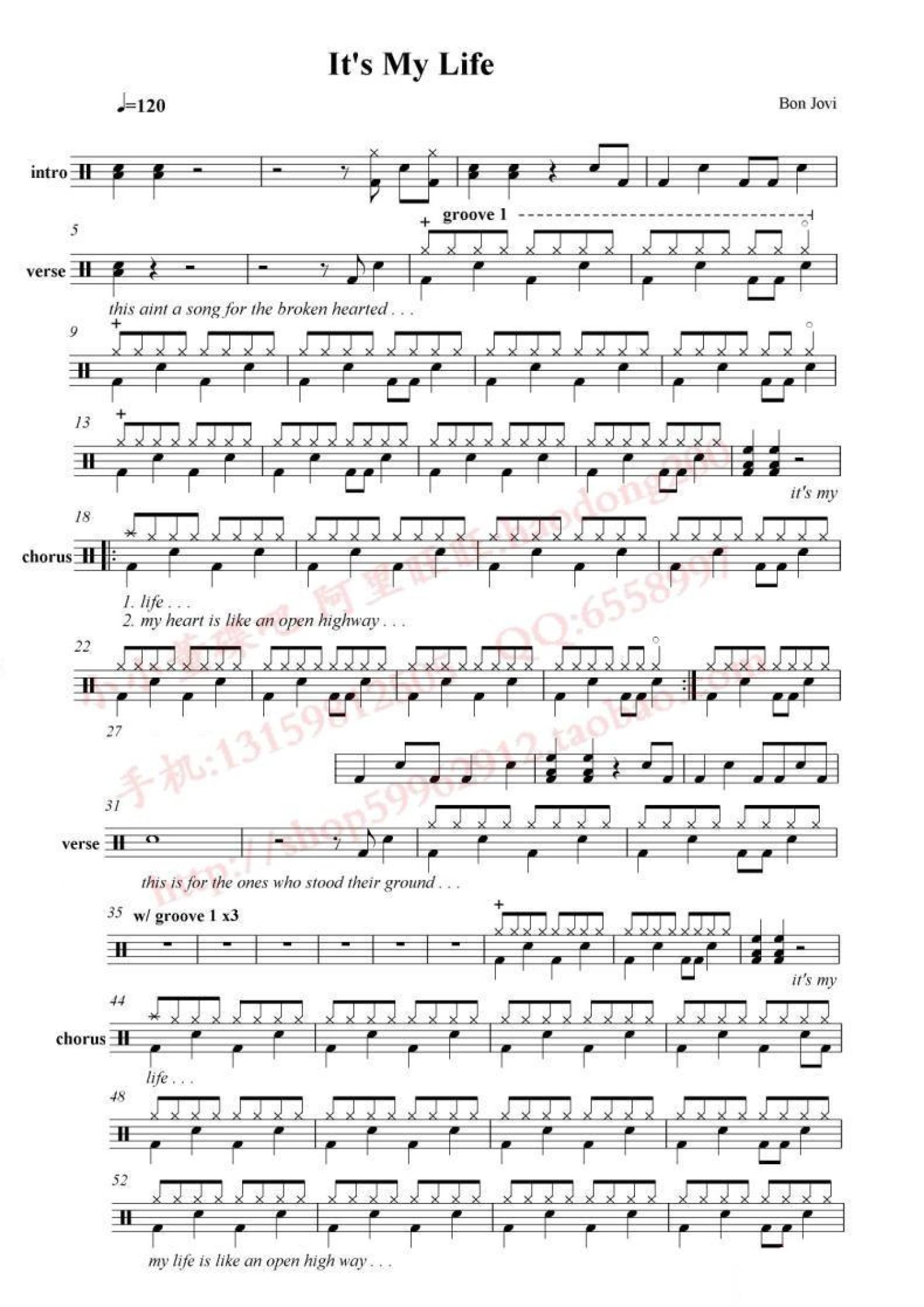 曲谱介绍: It's my life这是我的生命(架子鼓谱)-Bon Jovi邦・乔维