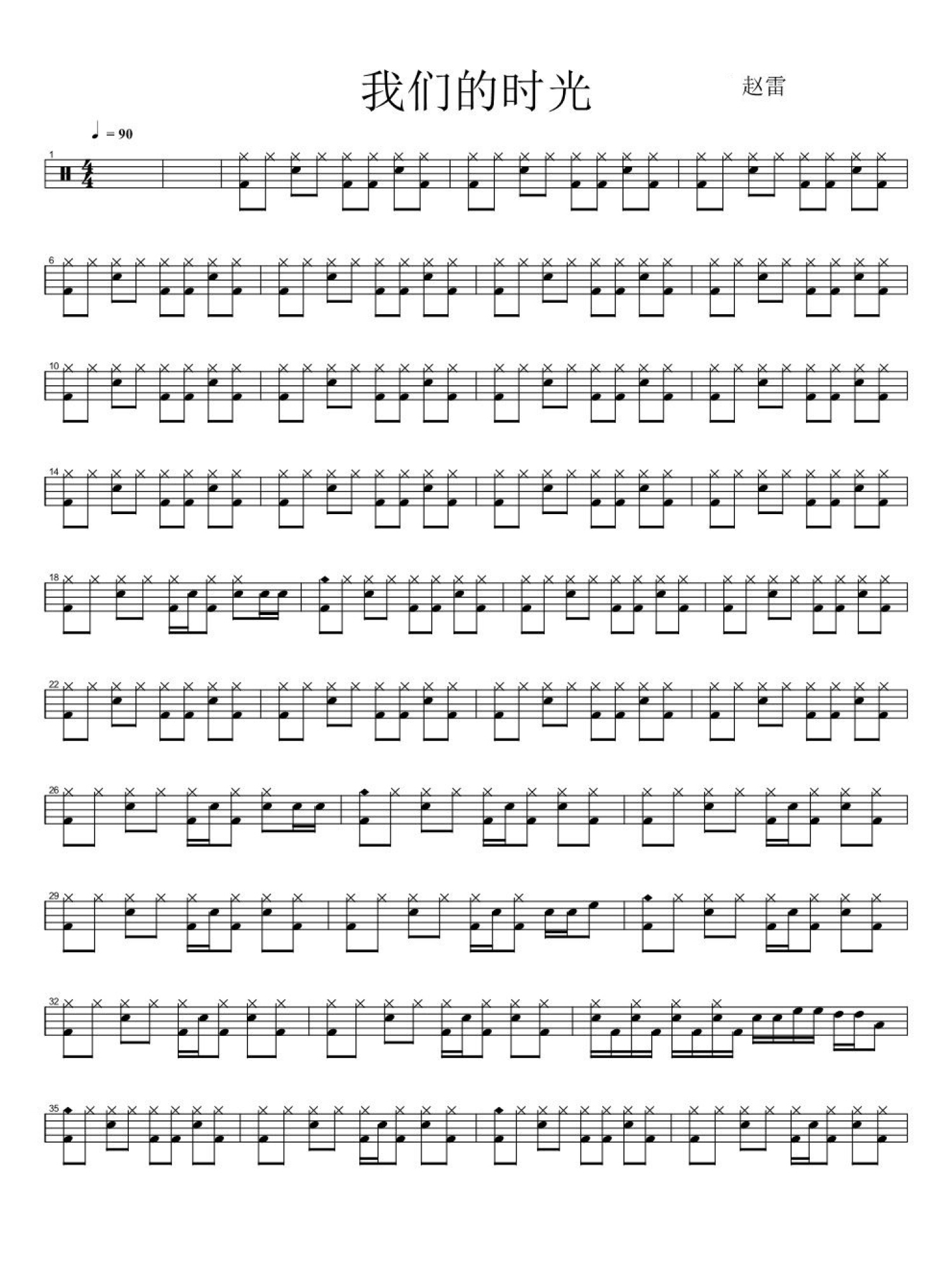 我们的时光鼓谱 - 赵雷 - 架子鼓谱