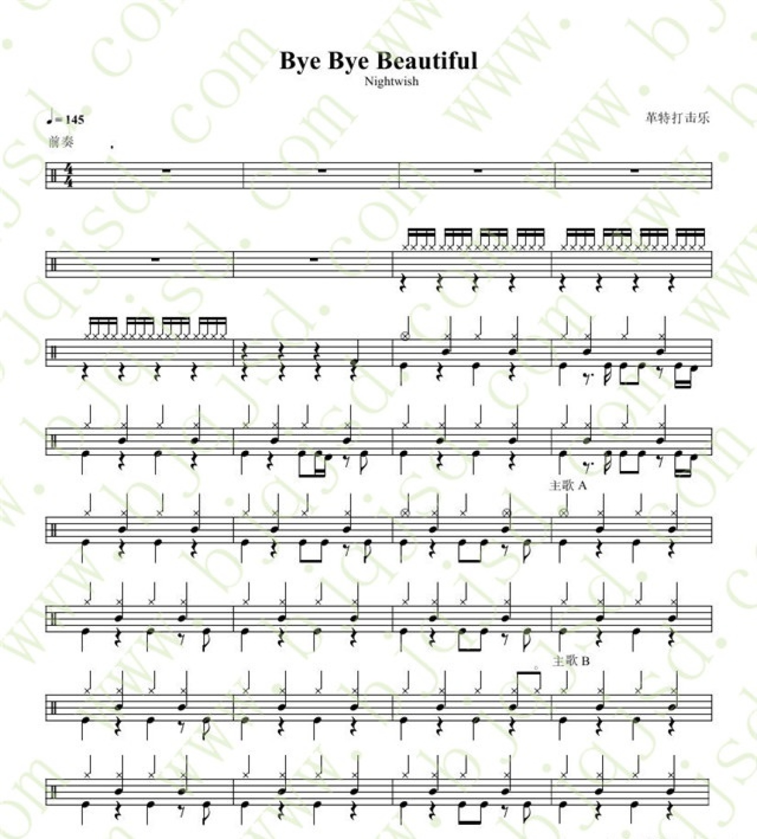 Bye Bye beautiful鼓谱 - Nightwish - 架子鼓谱