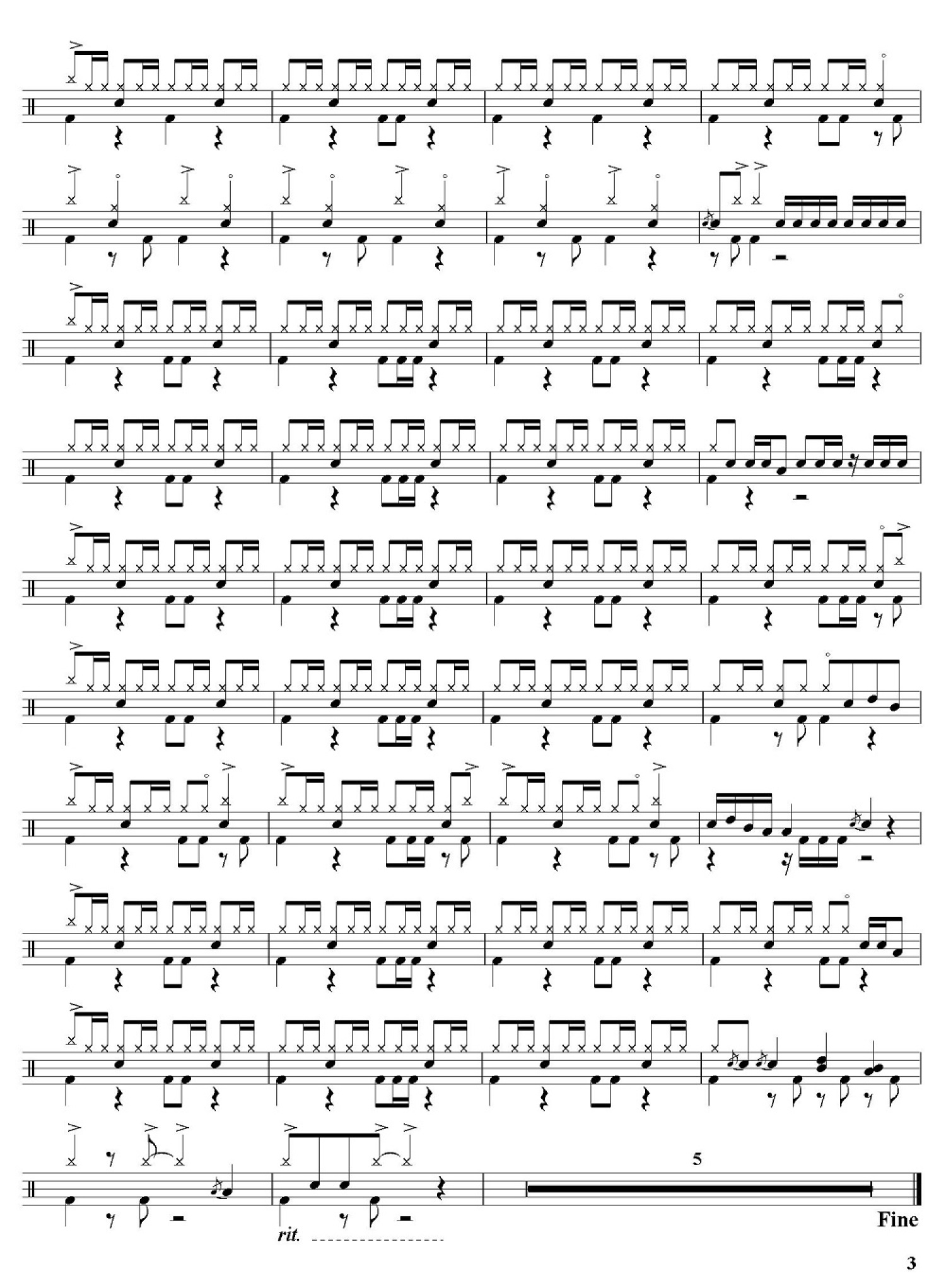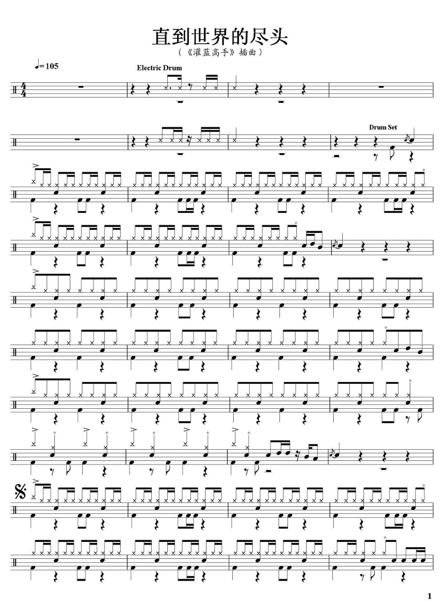 曲谱介绍: 走到世界尽头(架子鼓谱)