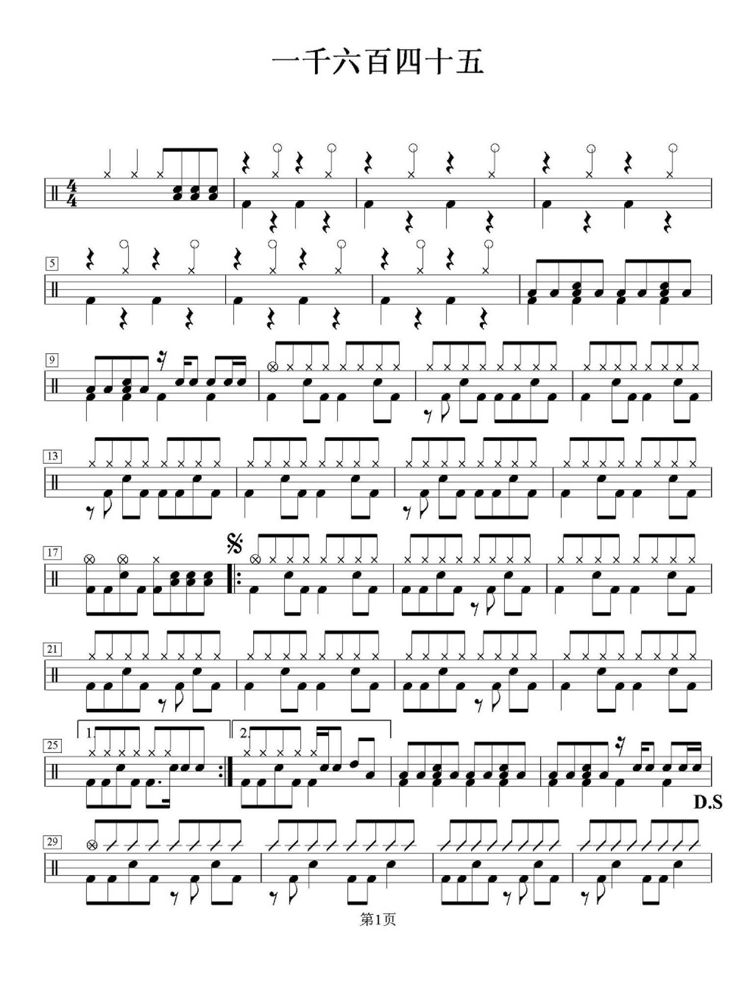一千六百四十五鼓谱 - 架子鼓谱