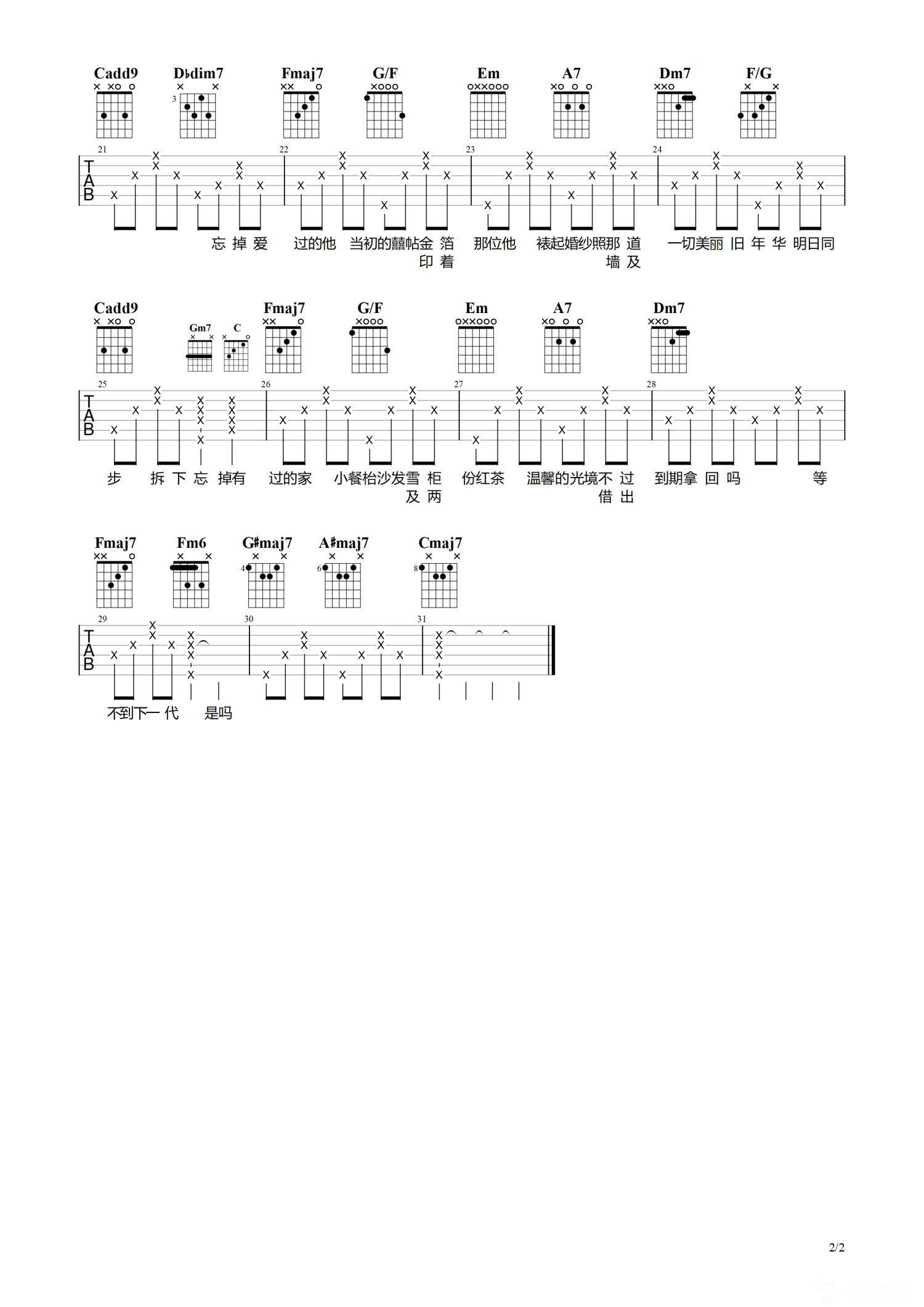 吉他弹唱C调来源:凡凡吉他教室583 浏览2022-11-07 19:22发布图谱共2页