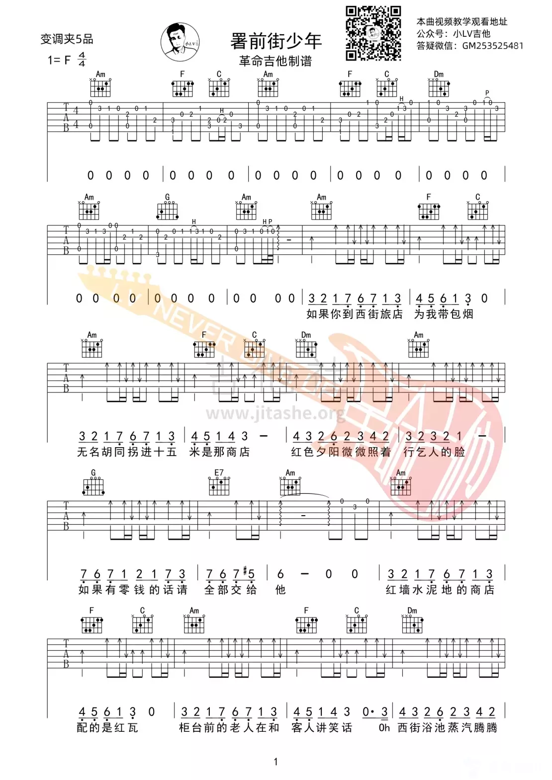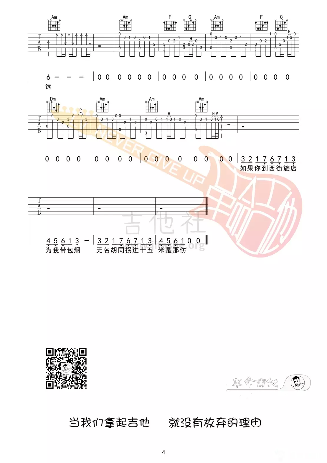 曲谱介绍: 赵雷《署前街少年》吉他弹唱谱,采用C调指法编配,革命吉他编配出品,共有4张高清图谱。