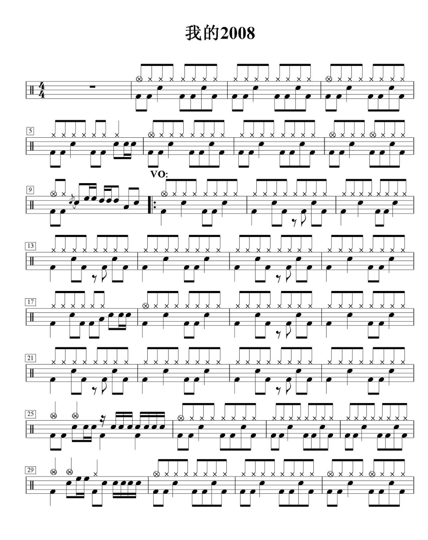 曲谱介绍: 我的2008(架子鼓谱)-九拍