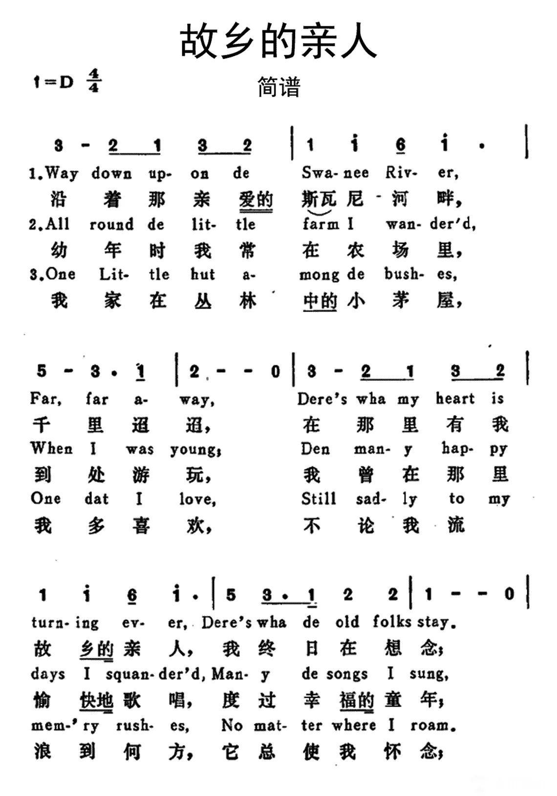 曲谱介绍: 美国民歌《故乡的亲人》,共有1张高清图谱,免翻页排版设计。