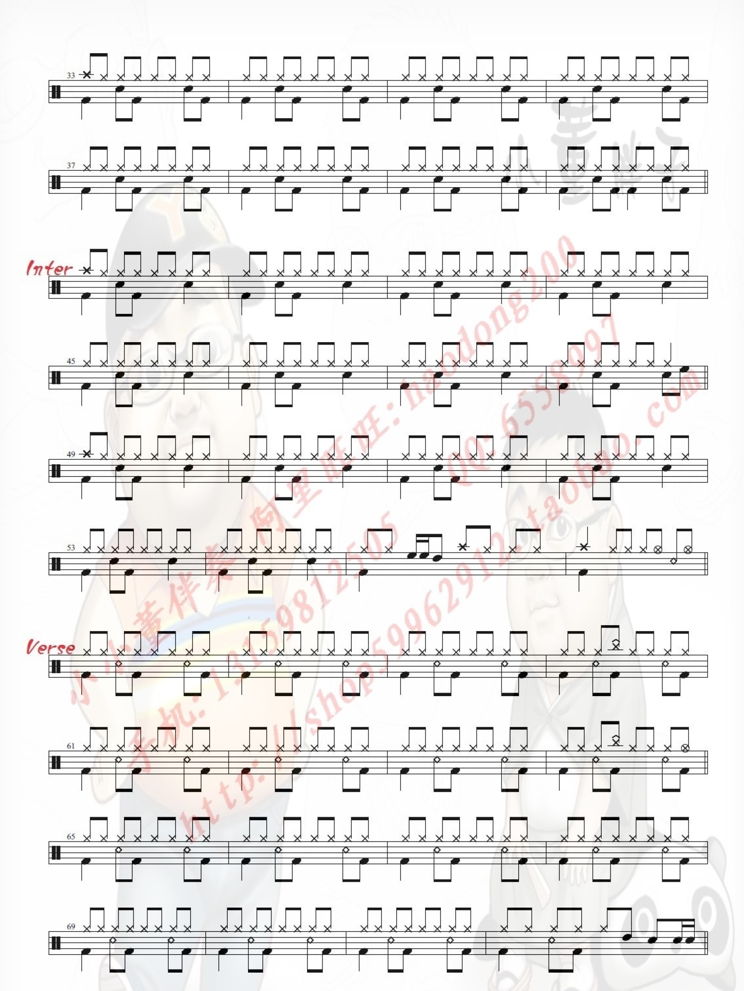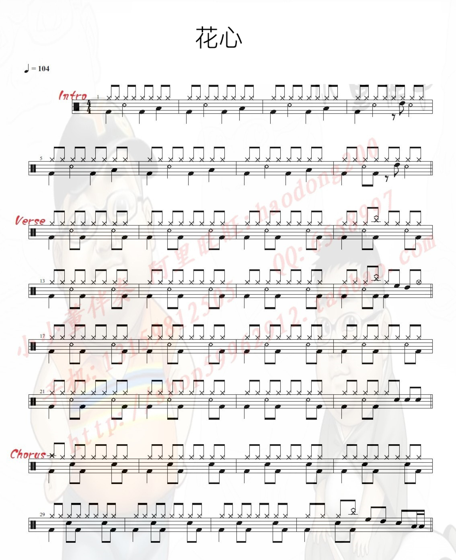 花心鼓谱 - 周华健 - 架子鼓谱