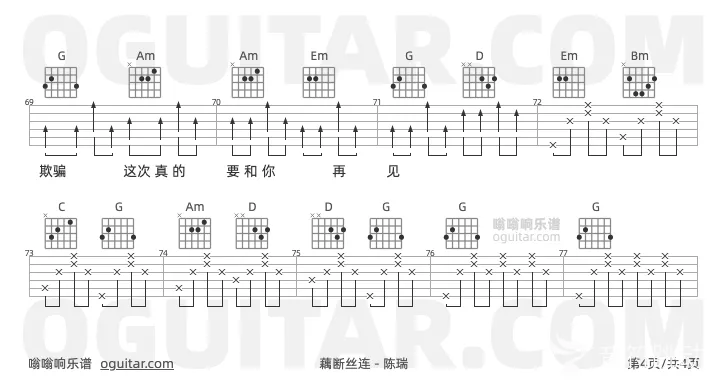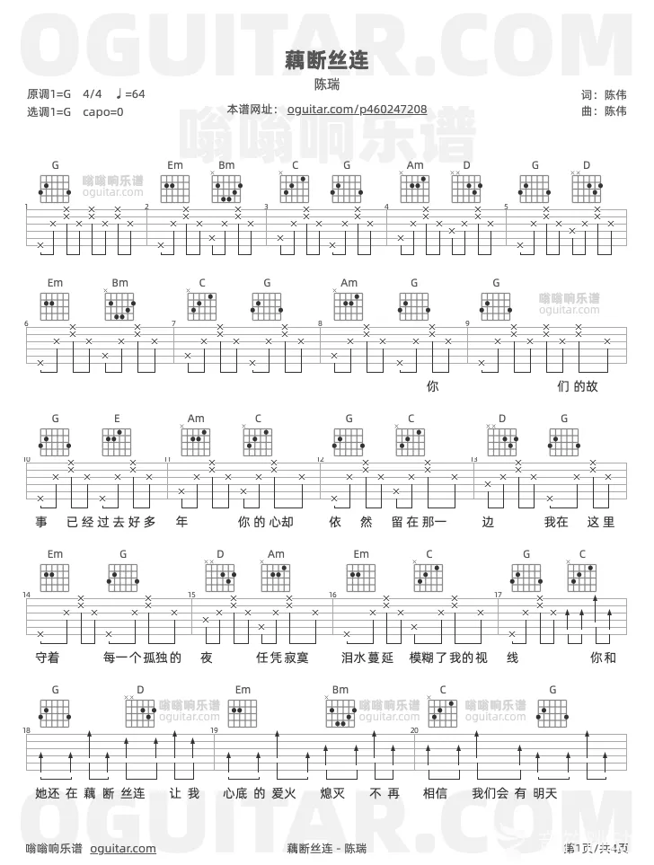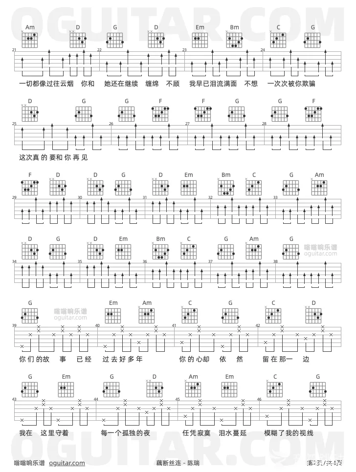 曲谱介绍: 陈瑞《藕断丝连》吉他弹唱谱,共有3张高清图谱。