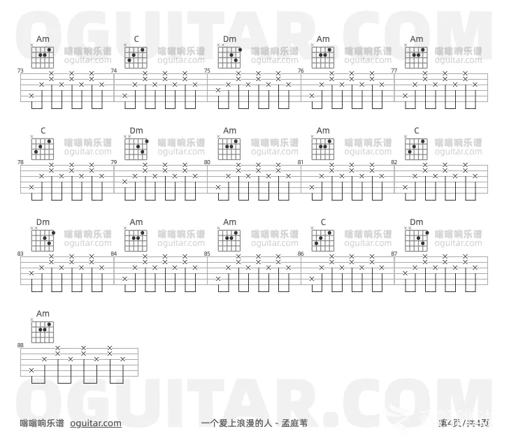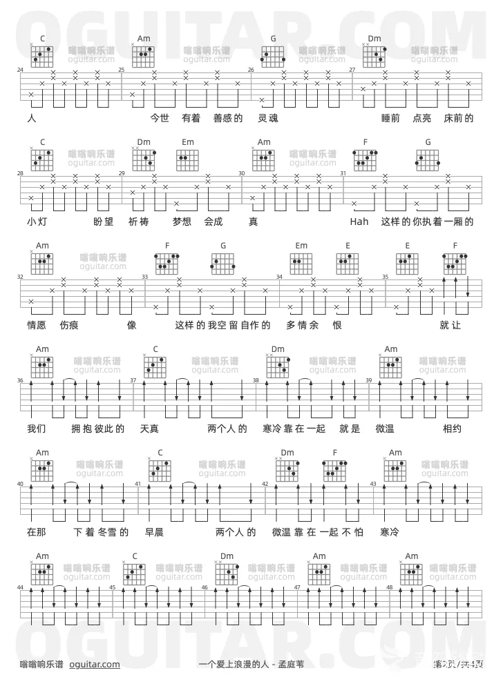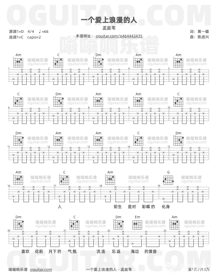 曲谱介绍: 孟庭苇《一个爱上浪漫的人》吉他弹唱谱,共有3张高清图谱。