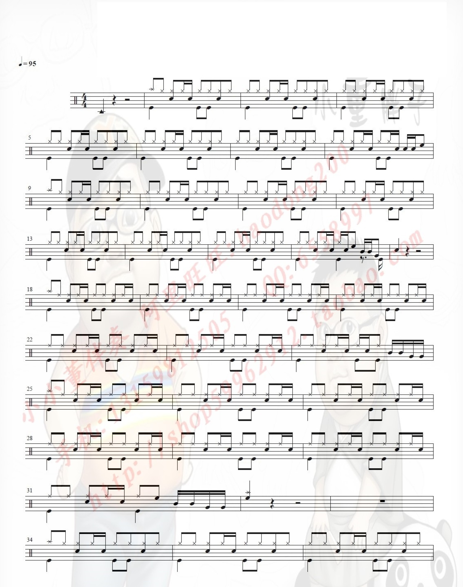 曲谱介绍: 曾经的你(架子鼓谱)-许巍