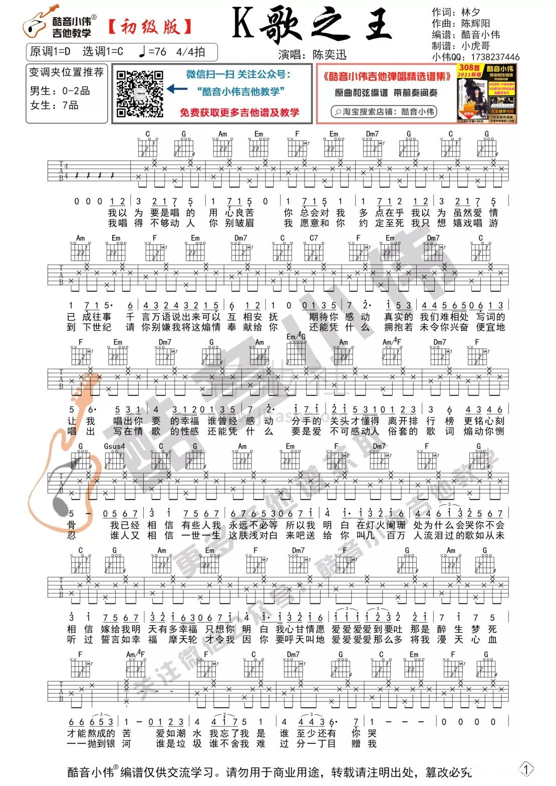 琴谱网为您精心推荐 K歌之王 高清图谱