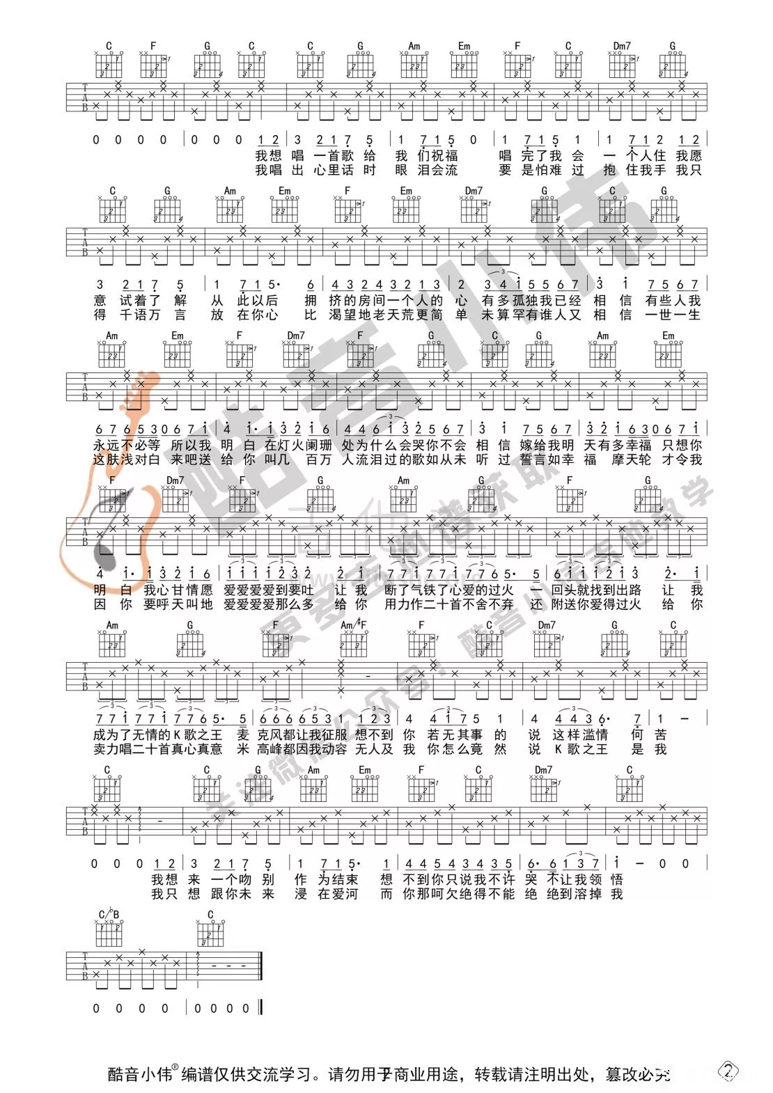 吉他弹唱C调来源:酷音小伟452 浏览2022-11-27 16:24发布图谱共2页