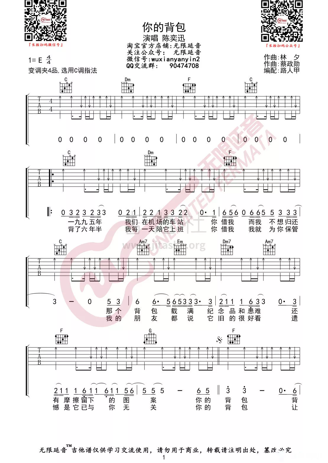 你的背包吉他谱 - 陈奕迅 - C调吉他弹唱谱
