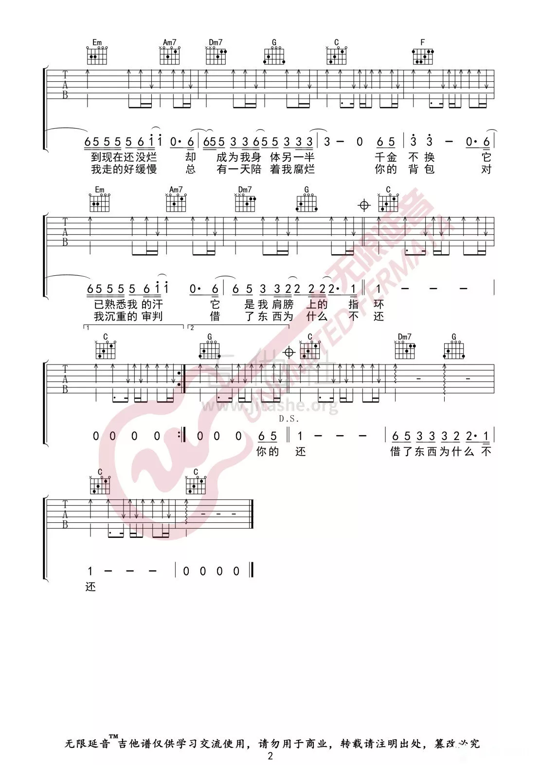 吉他弹唱C调来源:无限延音463 浏览2022-11-27 16:23发布图谱共2页